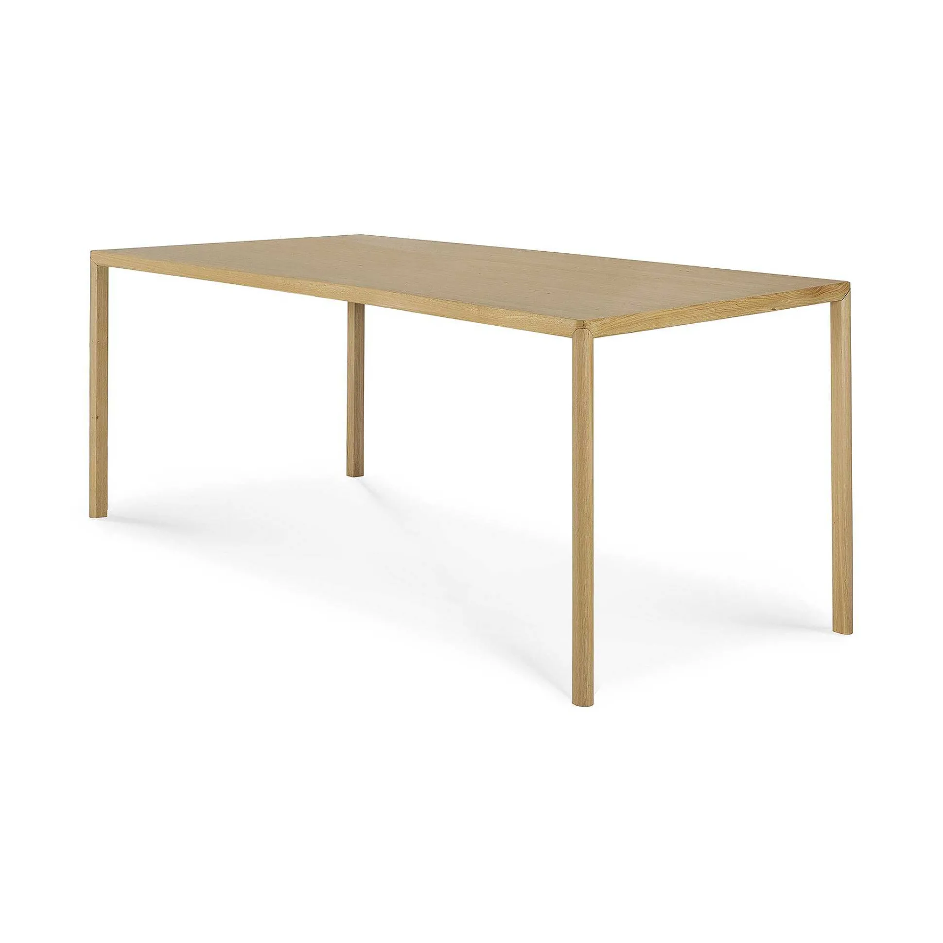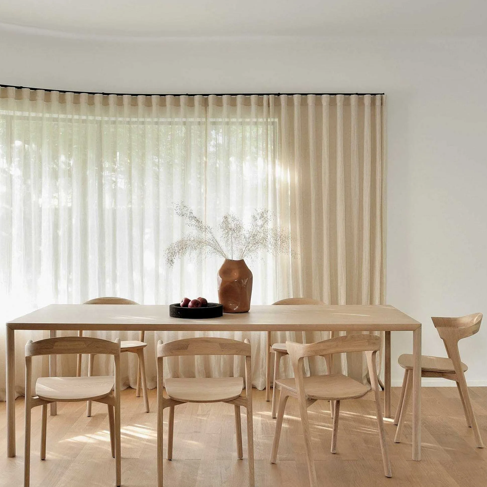 With sleek bevelled legs, the tabletop seems to float effortlessly above. The Oak Air is a strong and lean dining table disguised in a simple, clean and minimal design. Inspired by the lightness experienced with the bed of the same name.