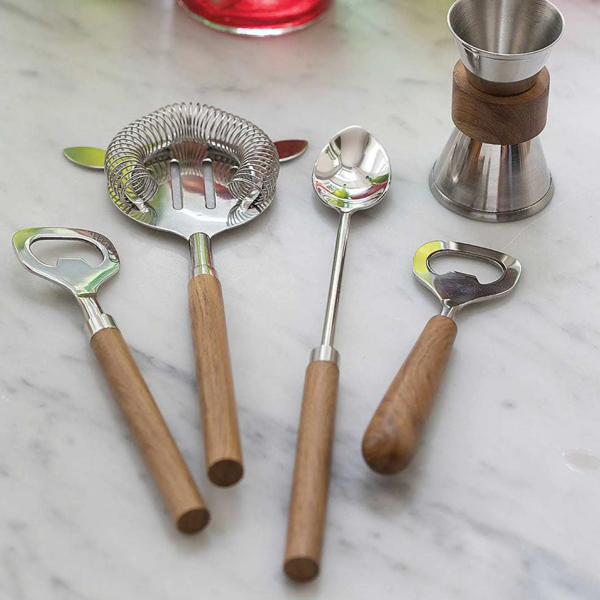 Keep calm and enjoy happy hour with this must-have bar gadget. Sleek and sturdy in design, our Almora stainless jigger is sure to bring out your inner mixologist. Masterfully craft the most precise of cocktails with a curved teak handle for extra support, sustainably harvested and crafted by hand in Thailand.