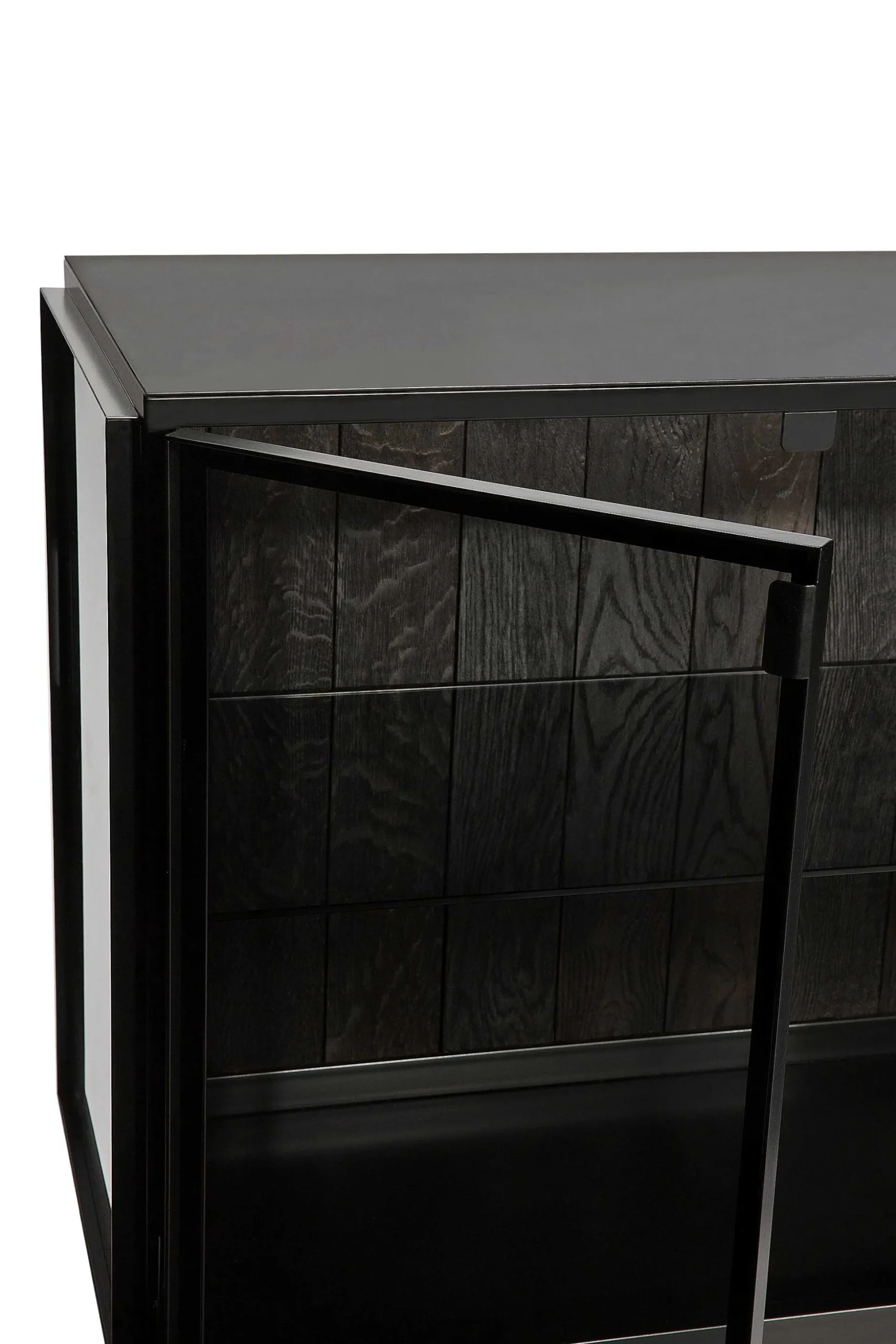 The Anders collection is an exploration: a journey on which we challenge ourselves to work with new materials yet always remain true to our signature aesthetics. A solid black frame contrasts beautifully with the glass surface for a fresh twist on traditional cabinetry. The glass doors are the defining feature, and ample shelving maximizes storage and display options.