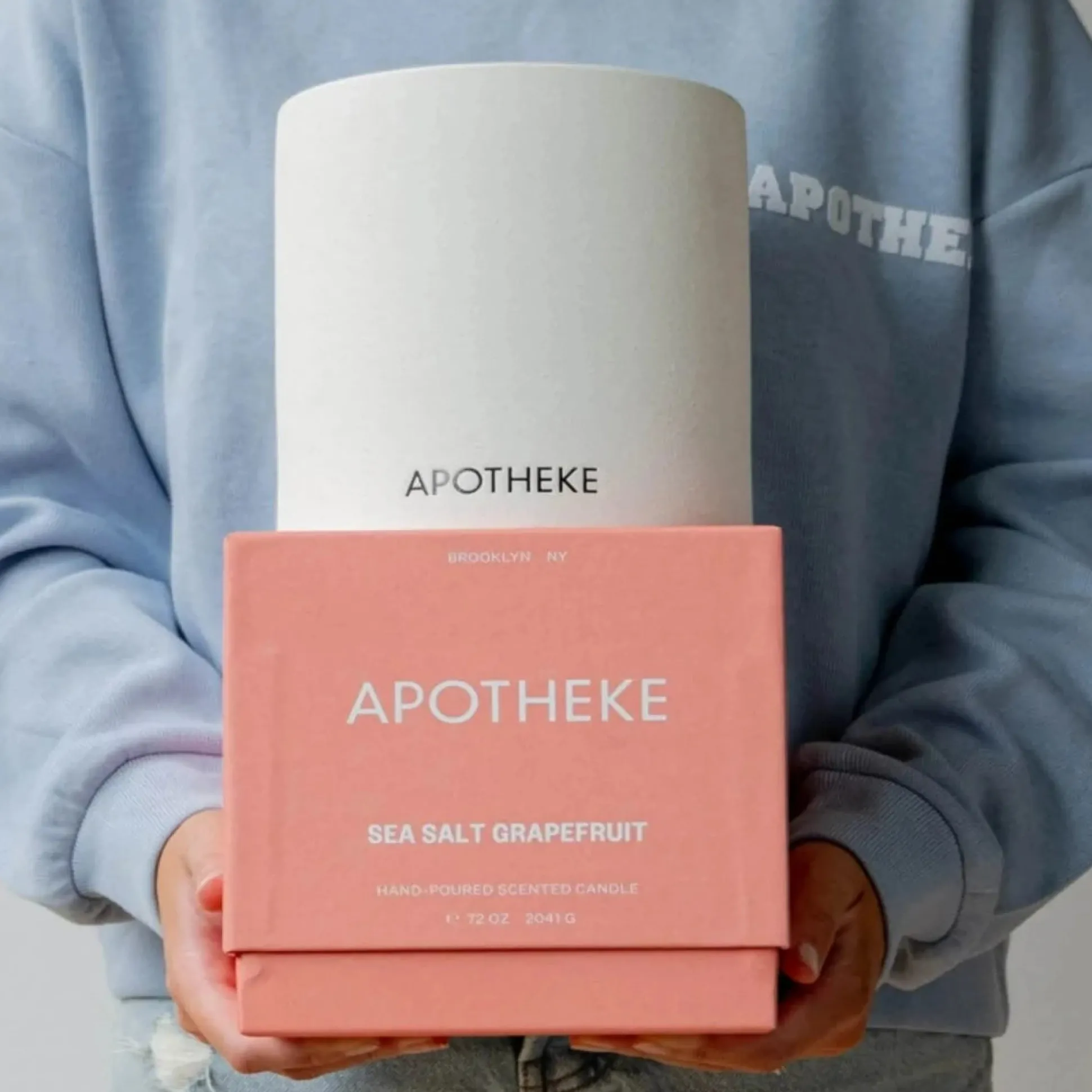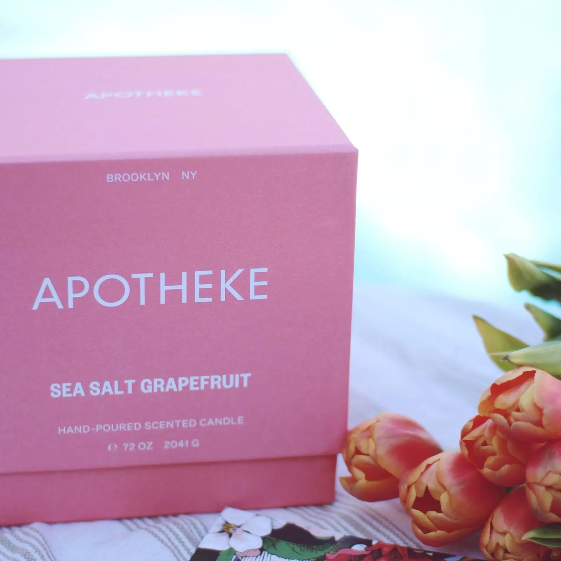 This extra-large four-wick concrete candle fills your space with the tang of sea salt, black pepper, and ripe grapefruit all balanced by dew drop accords and tarragon for a fragrance like summer by the sea.