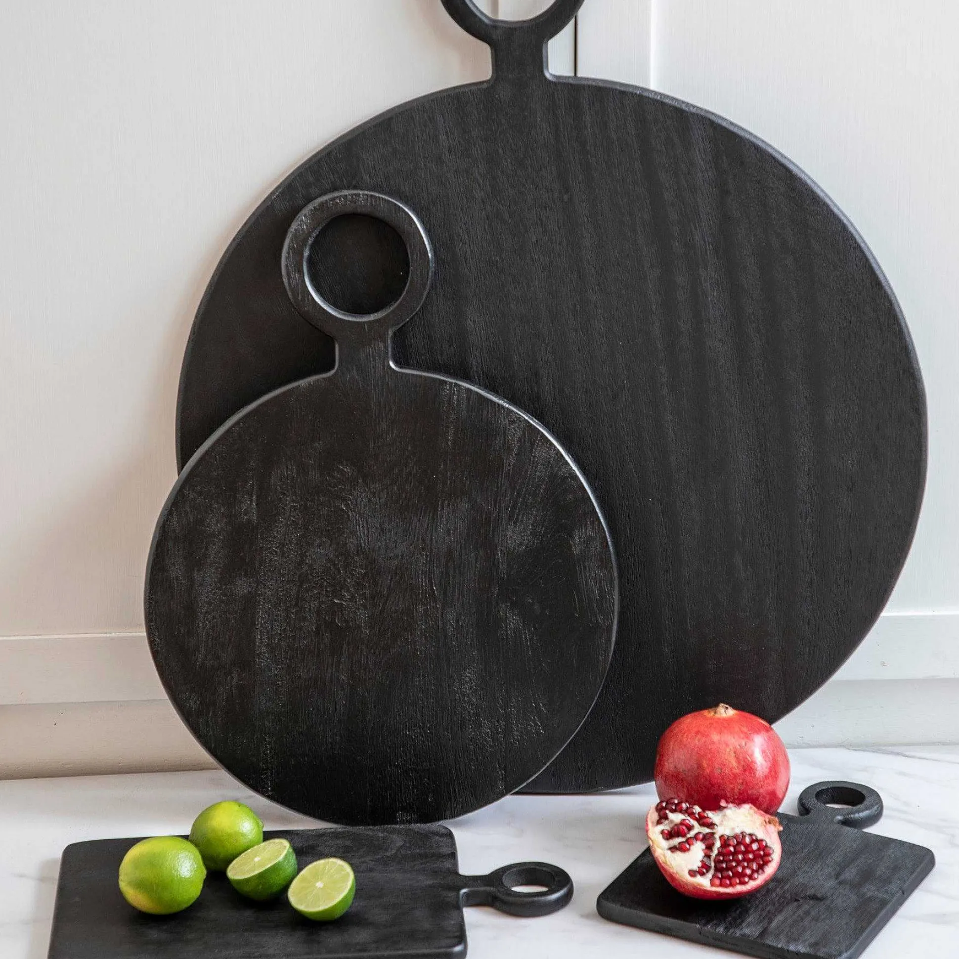 With our Black Mango Wood boards, a bit of contrast goes a long way making them a bold addition to any plating. Handcrafted from protected groves in India, this dreamy platter boasts a darkened color palette, beautifully accenting its natural striations and subtle highlights.