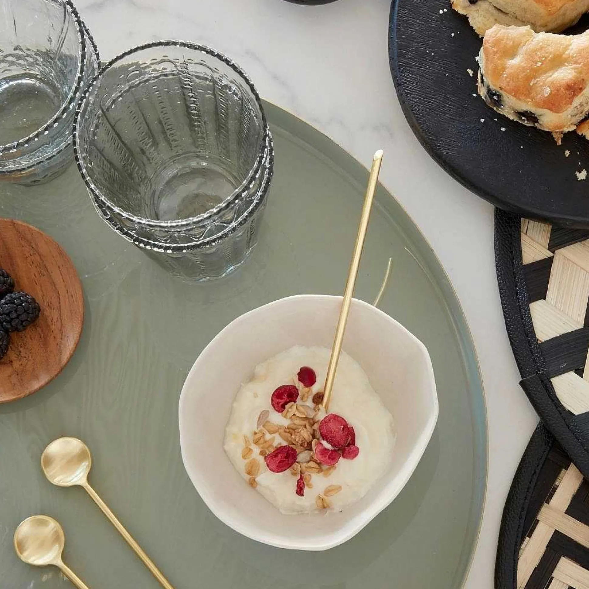 Whether you’re setting the table or simply seeking an elegant pop of color, this stylish selection of ethically crafted enamel round trays will do just the trick. Illuminated by their unmistakable gold halo, each of these vibrant little beauties was expertly assembled by hand using sustainable materials whenever possible.