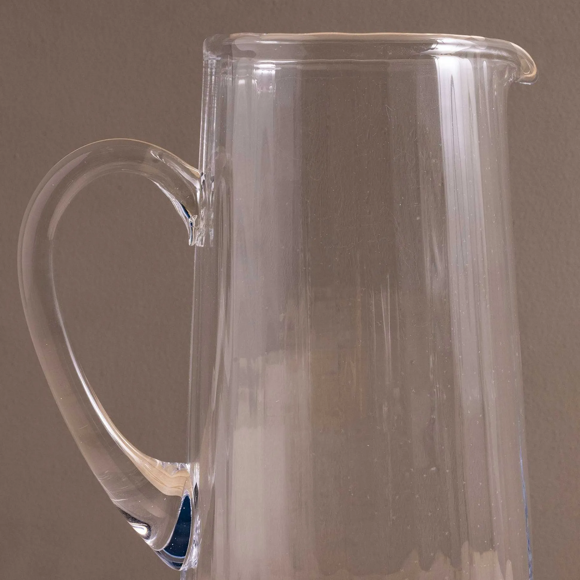 A classic fluted jug, mouth blown by skilled glassblowers and finished with a soft, scissor-cut rim. The subtle texture catches and reflects the light.