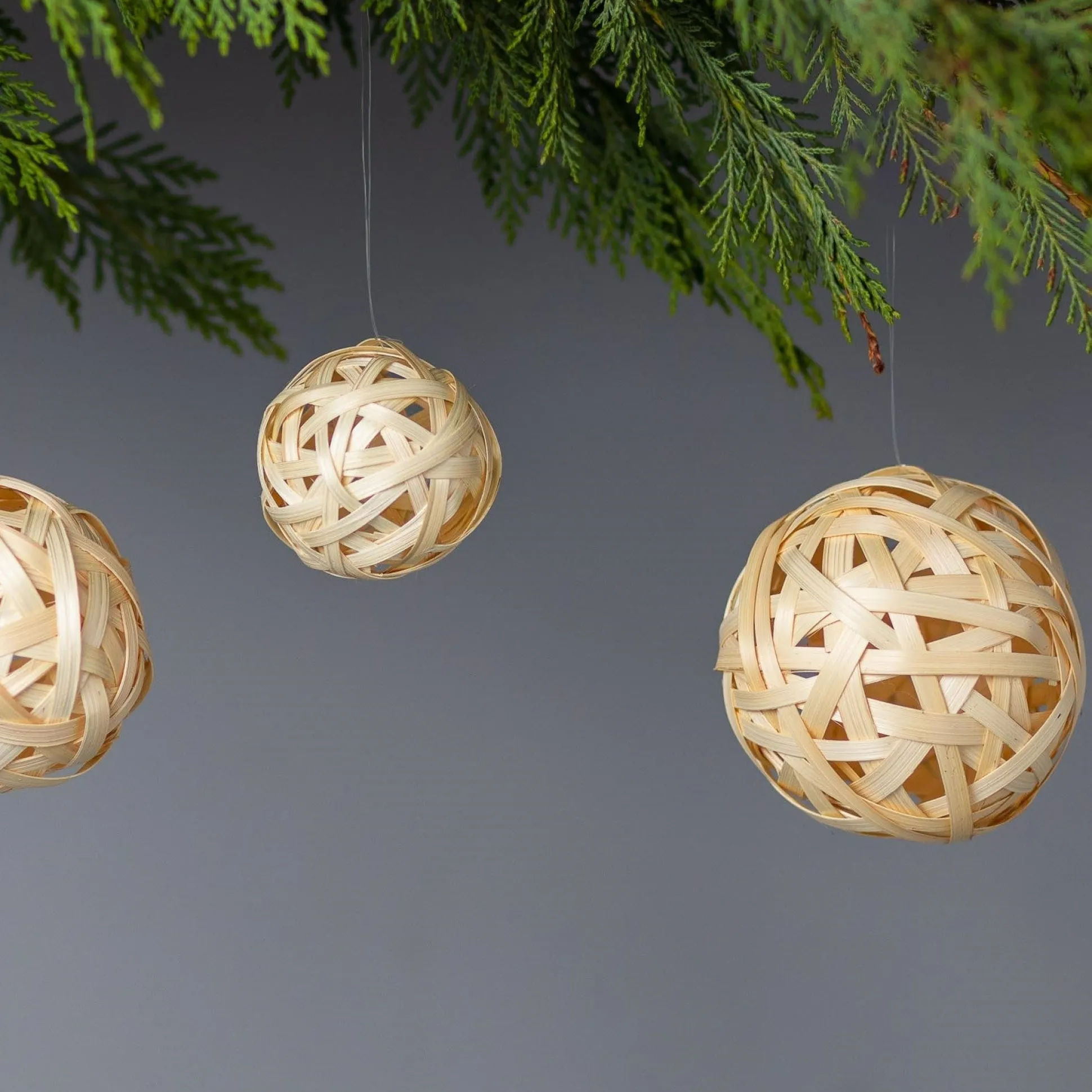 Add a bit of organic elegance to your holiday spread with our bamboo globe ornaments—perfect for trimming the tree or topping a gift this season. Each of our bamboo ornaments is woven by hand and ethically crafted in small batches by skilled artisans in Vietnam. Pair with our mango wood garland and pine ornaments for a complete, Earth-inspired look look.