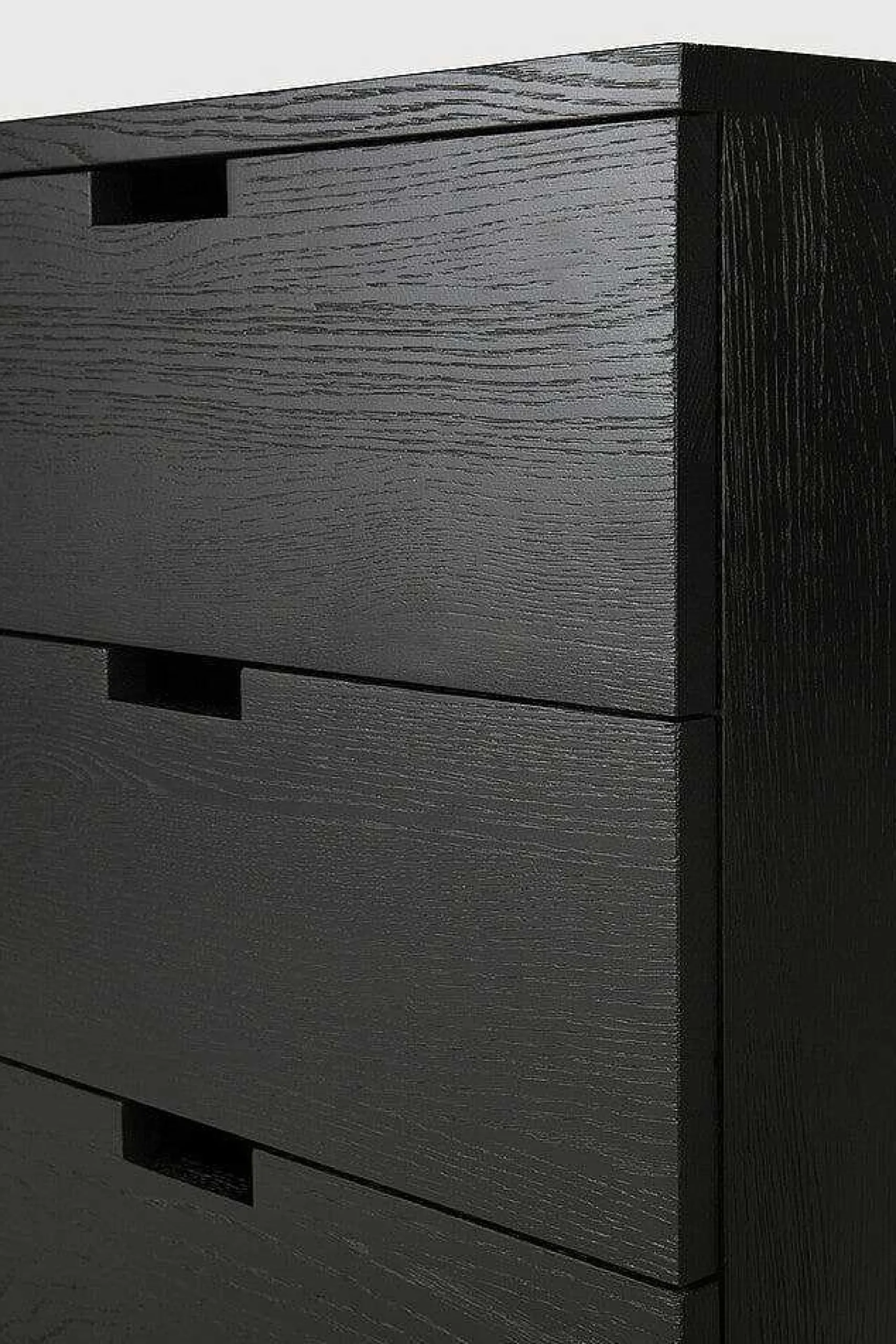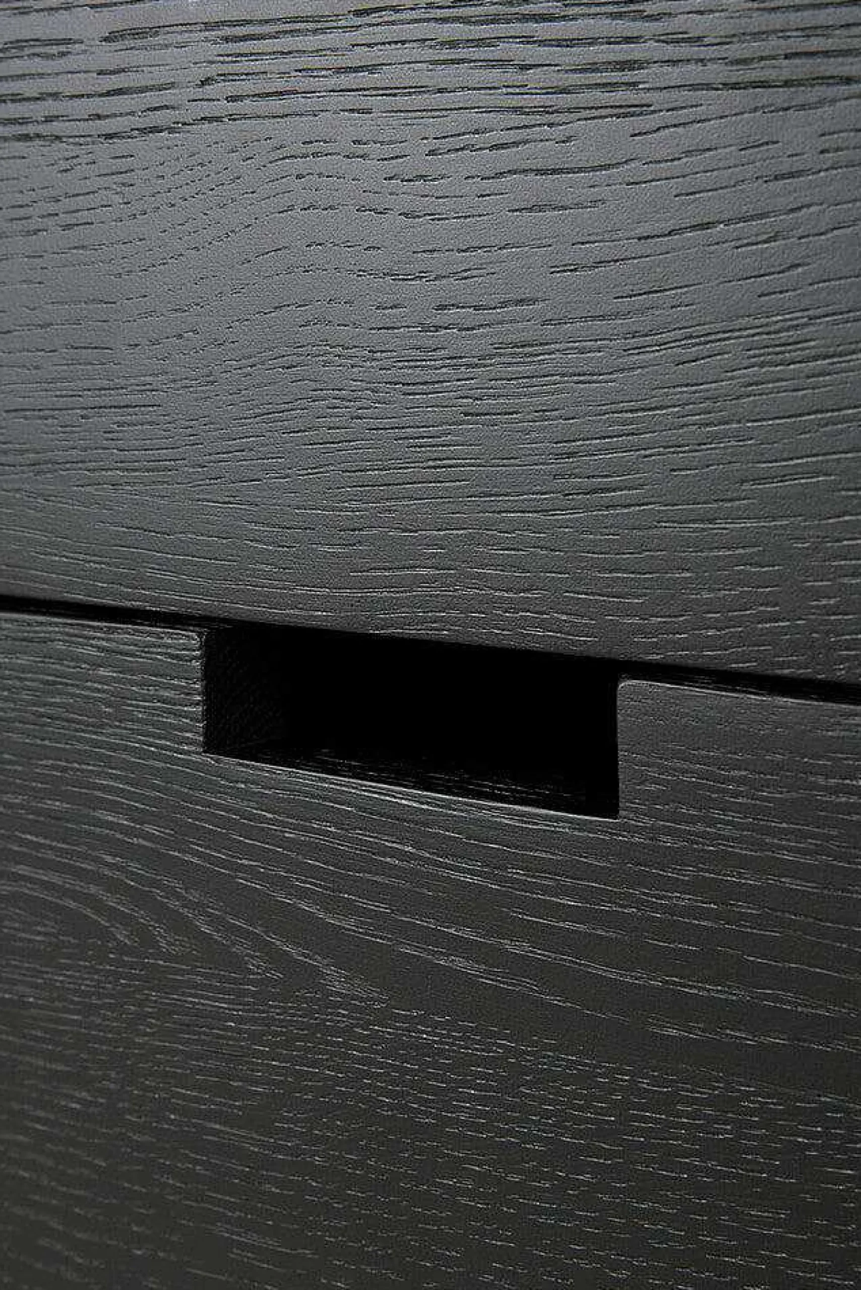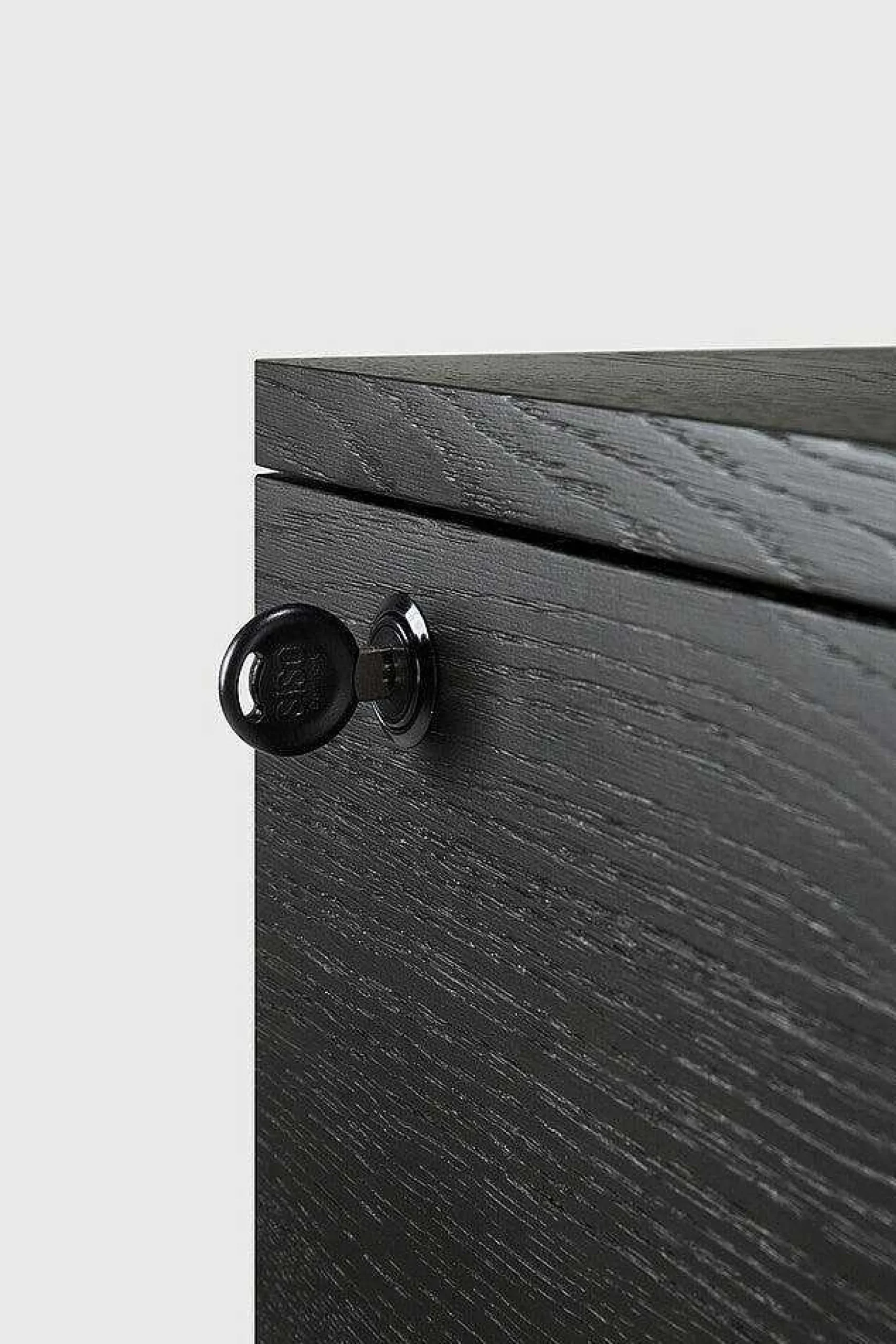 - Made from black-tainted solid oak with a varnish finish.