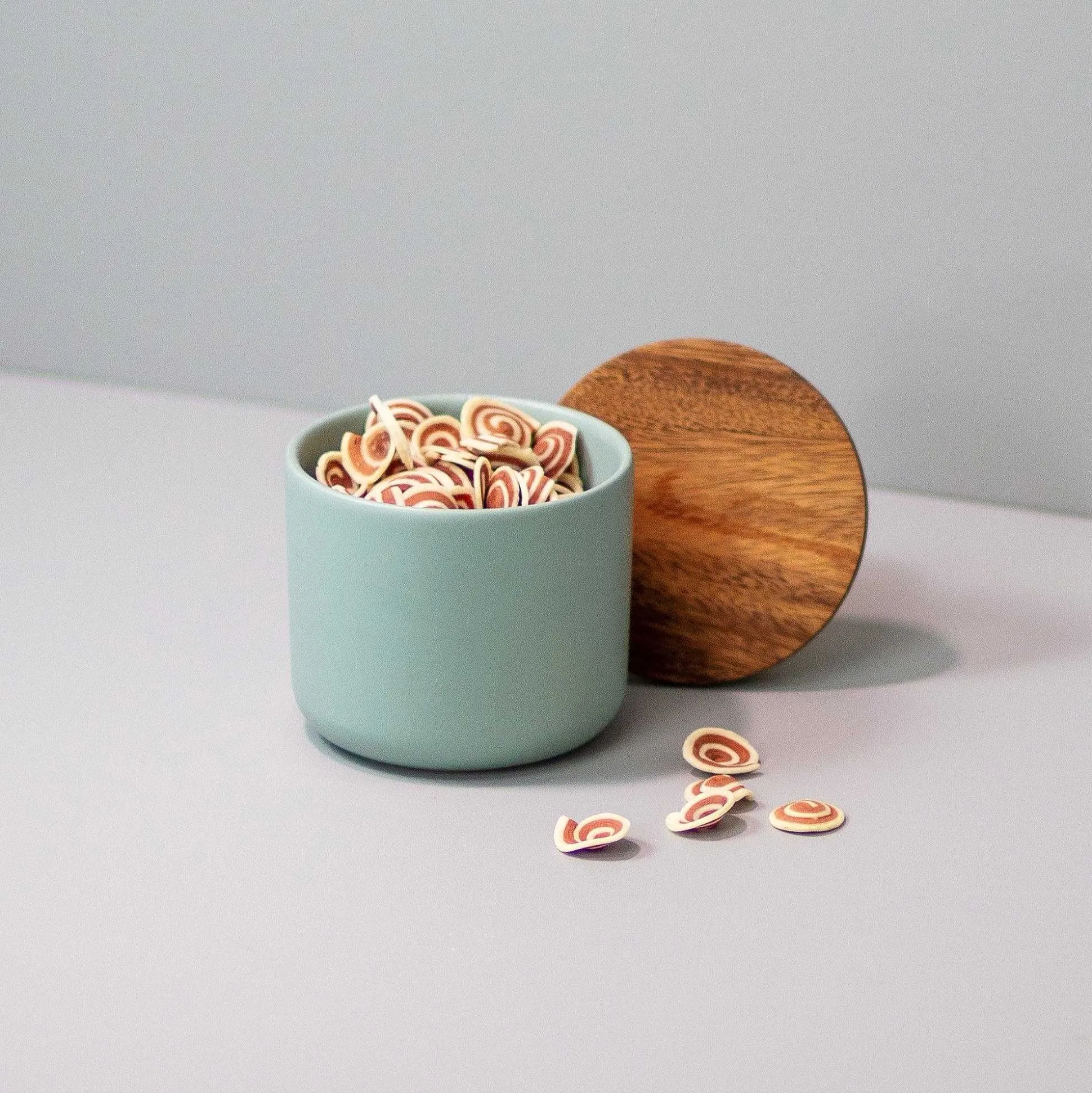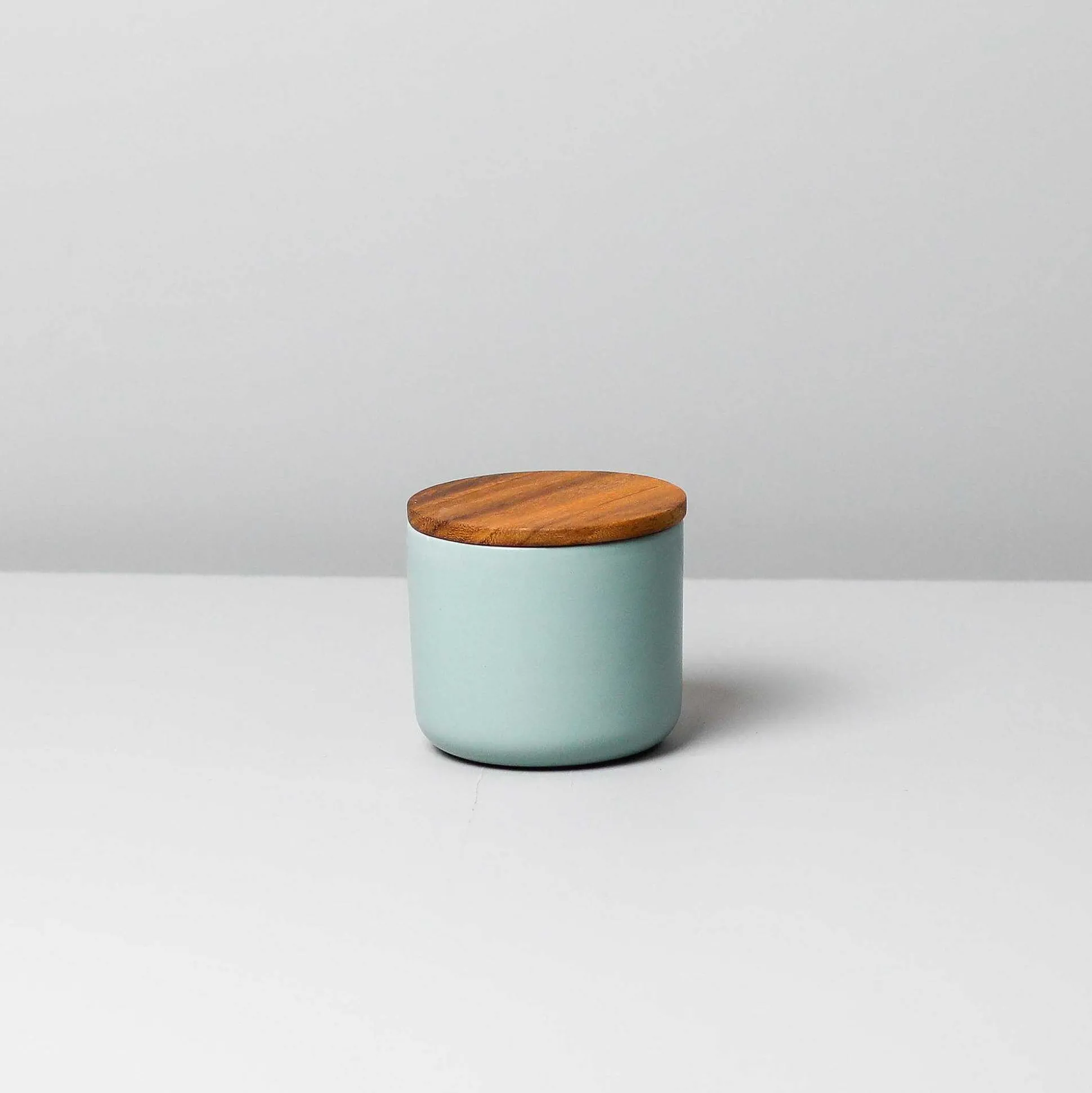 Store your goods in style with these medium Stoneware canisters, now available in an array of charming, Earth-inspired hues! Keep your items fresh with our airtight design, accented by an Acacia Wood lid. Compact stoneware pieces are perfect as a feature in your kitchen, keeping anything from pasta and grains to your favorite sweet snacks, even fuzzy cotton balls in the bathroom.