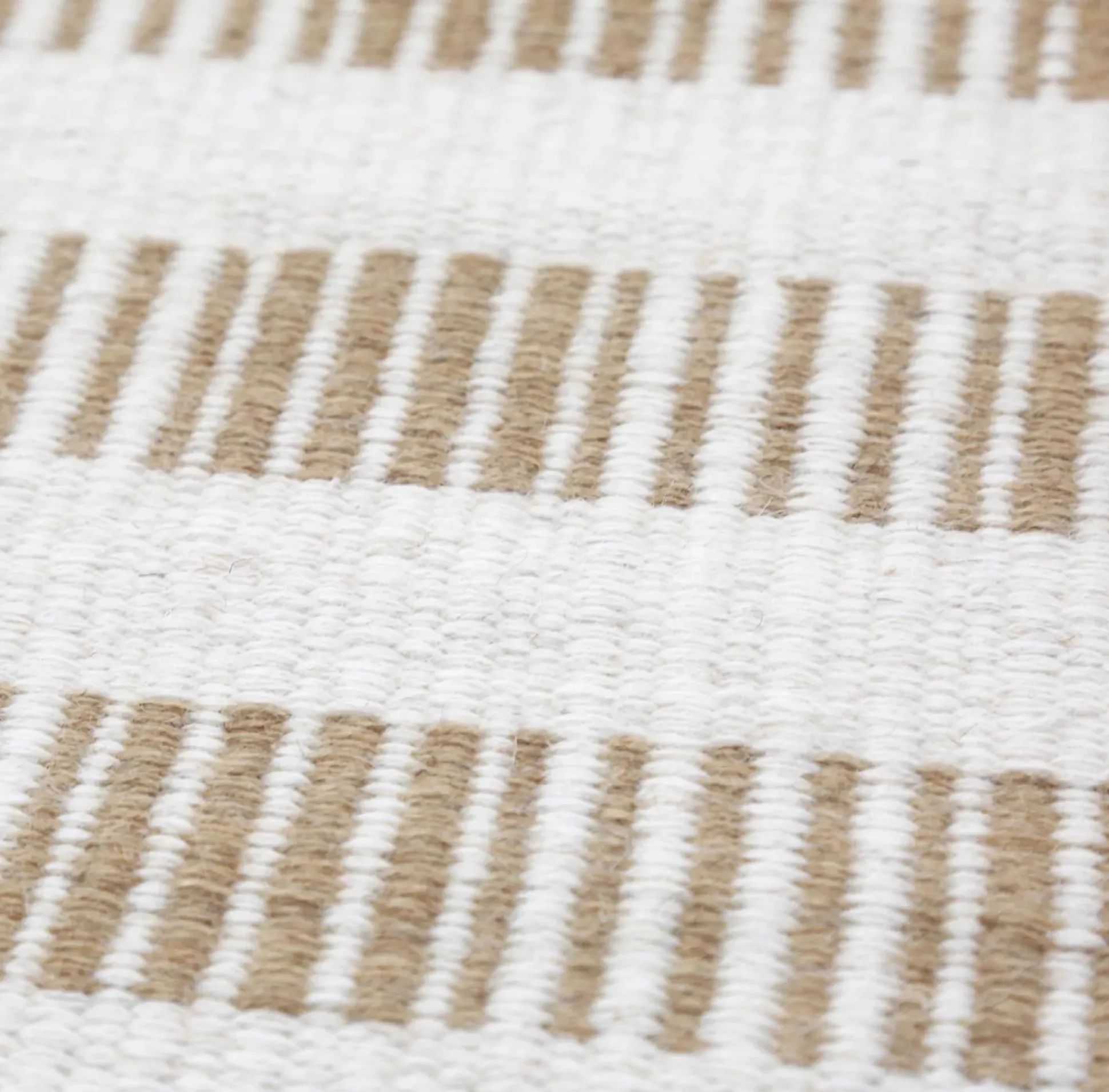 Our Brooke rugs feature a deconstructed stripe pattern handmade from wool and cotton. The pronounced edge on each end give them a tailored finish, and keeps the rug from unraveling or snagging.