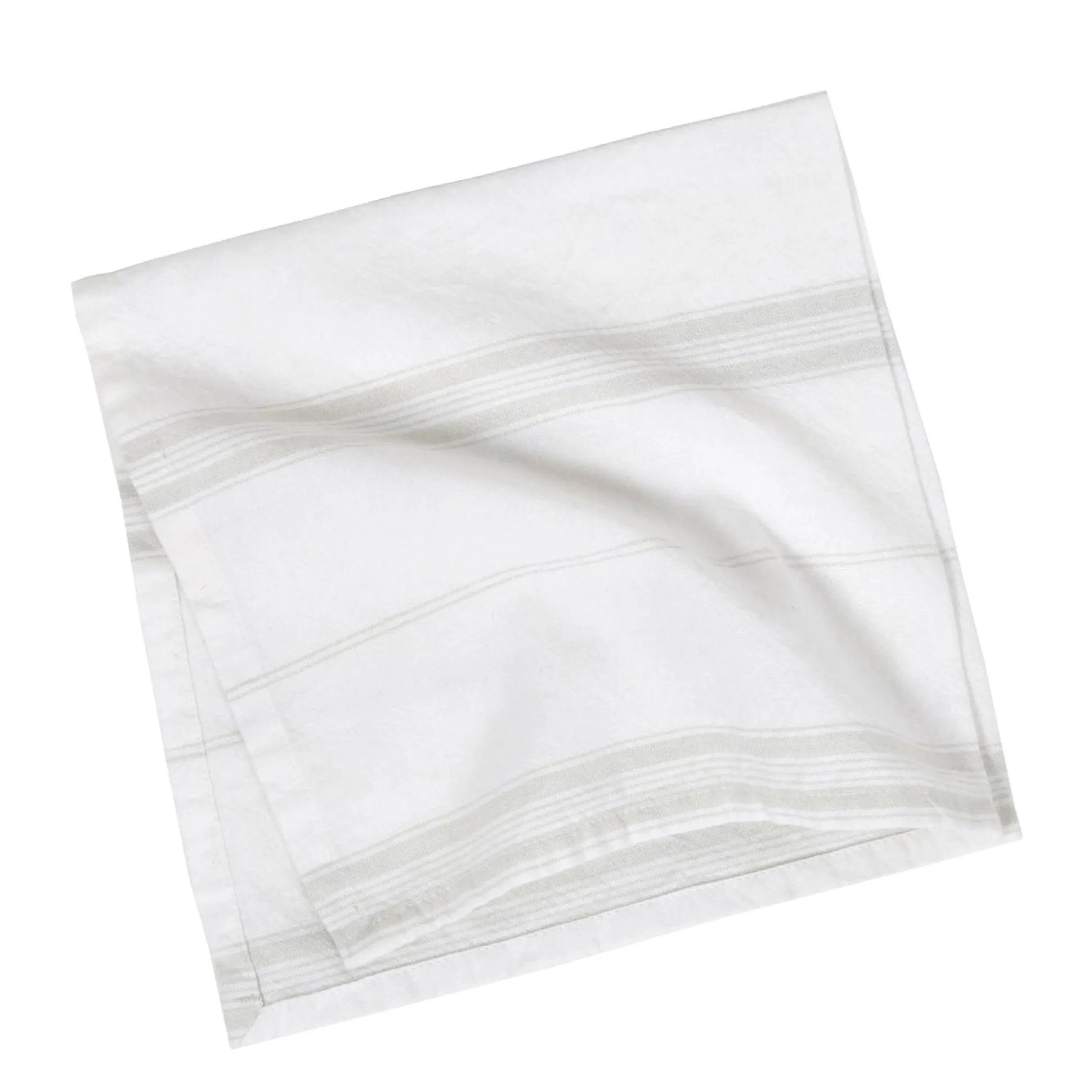 The Cambria napkins have a finished edge, white base cotton cloth with subtle colored stripes.