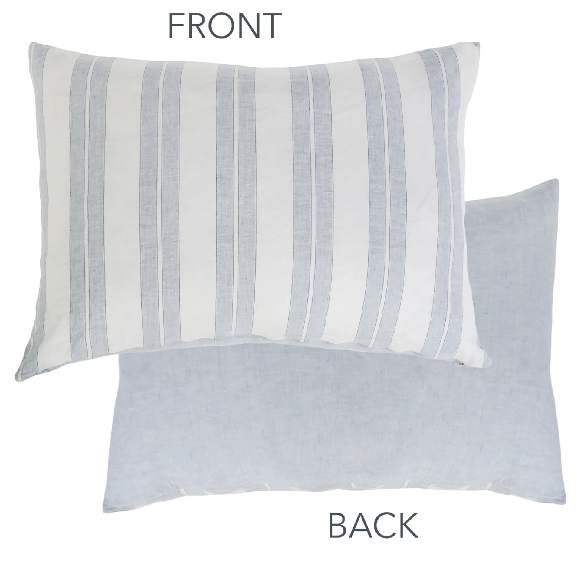 With broad stripes on one side and chambray on the other, the Carter collection is reversible and offers versatility with its neutral colors. Perfect for those that like to switch things up!