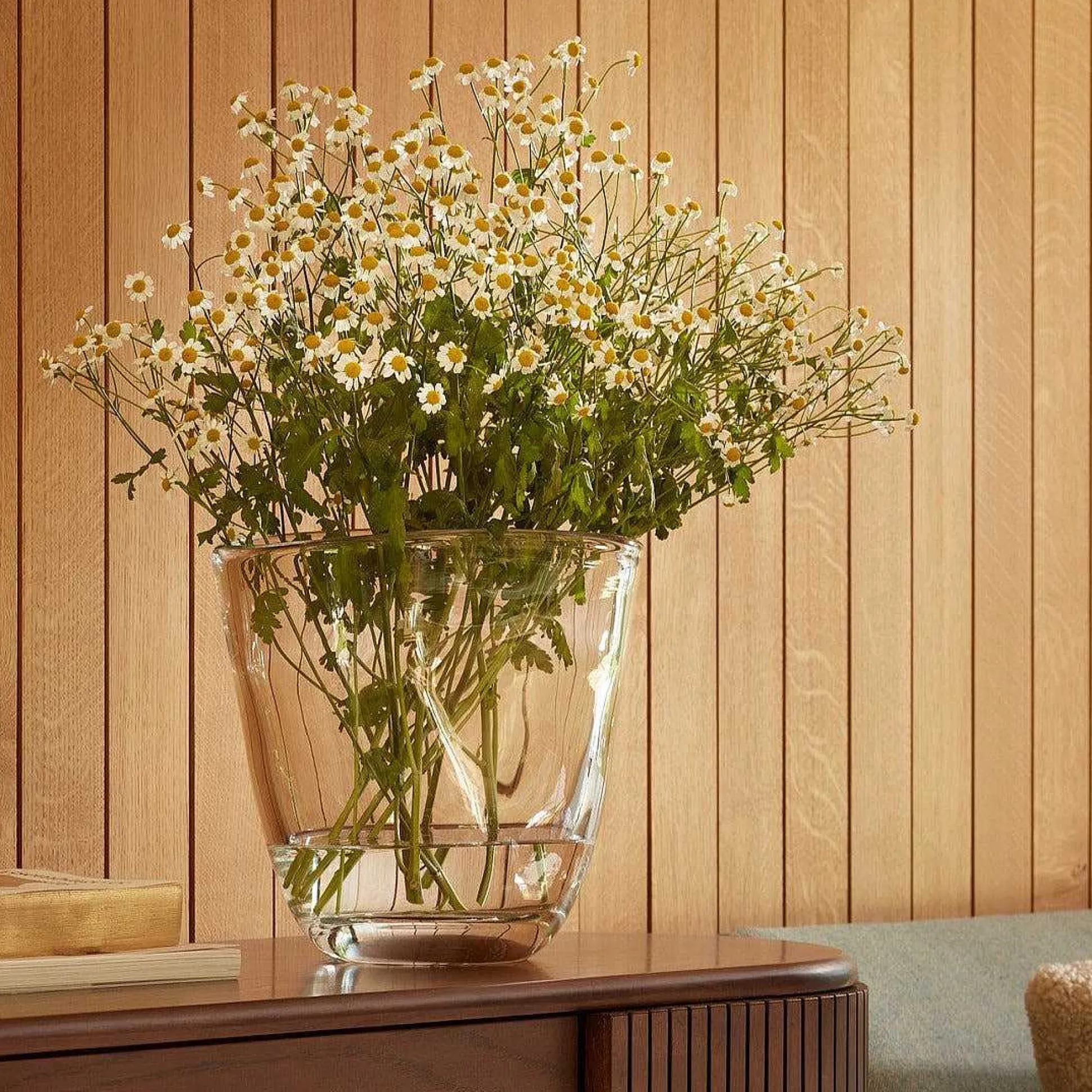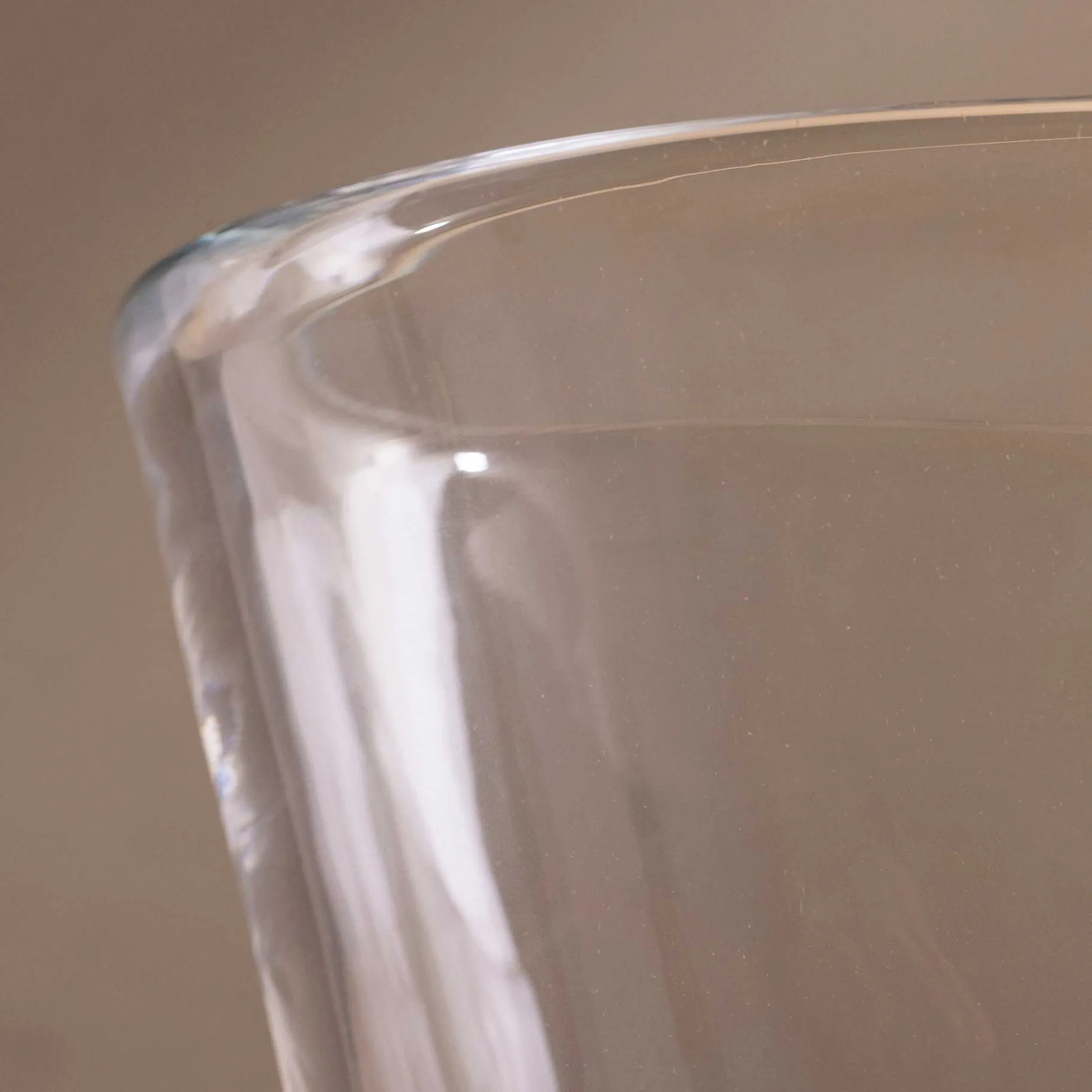 Organically-shaped dual champagne bucket with thick walls, mouth blown and hand formed by master glassblowers. Designed for two bottles of champagne for parties and celebrations. The thick walls of the generous, elliptical form are scissor cut while the glass is molten to create a statement serving piece. Versatile, for alternative use as a vase for big bunches of foliage or filled with citrus fruit.