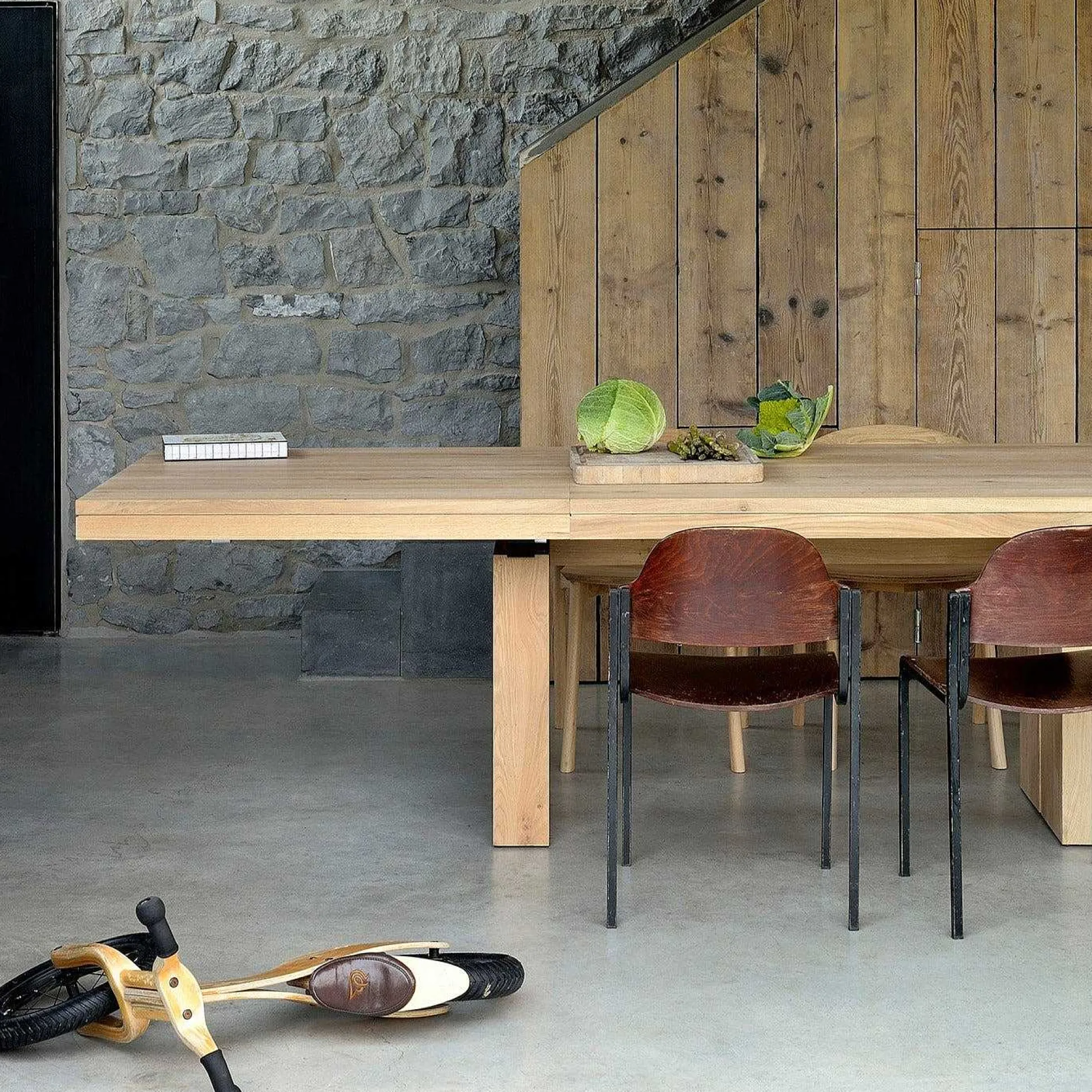 The double extendable dining table is a successful combination of pure lines and a solid look. Although the table looks heavy, it can very easily be extended single-handedly. It takes a few steps and no more than seconds to make space for whatever will be happening next in your home.