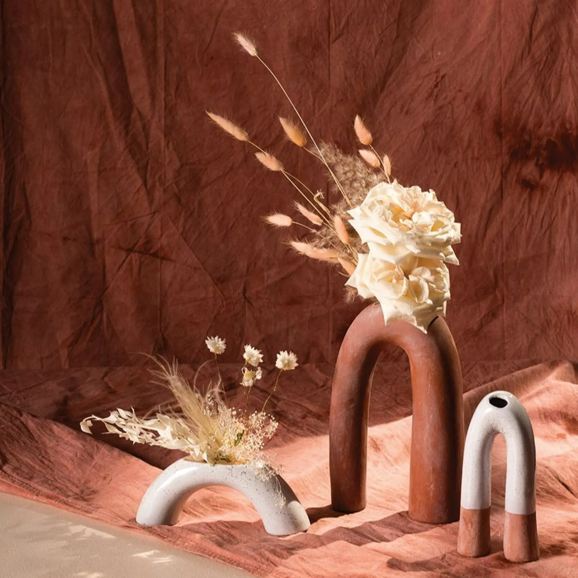 This funky vase assortment puts a modern spin on classic minimalism with smooth curves and subtly textured ceramic. Whether you are adorning a mantle or setting the table, this stunning duo is sure to set the mood.