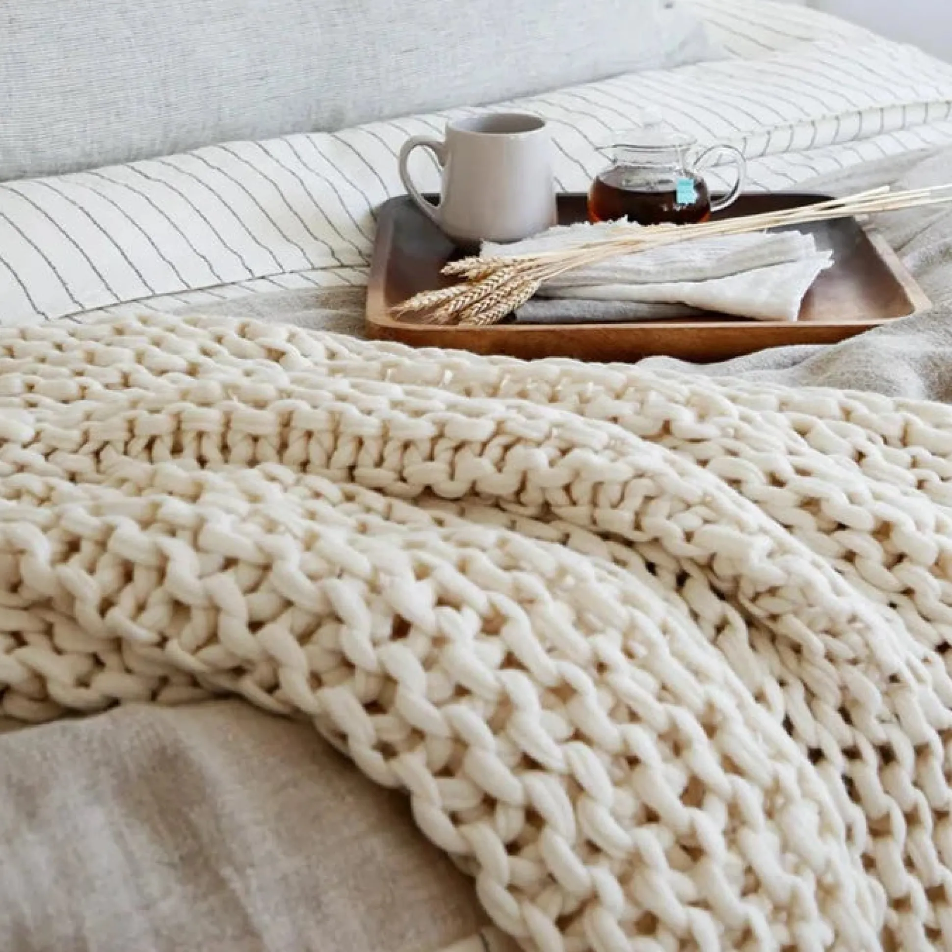 This extra chunky hand knit throw adds big bold texture to your home and bed.