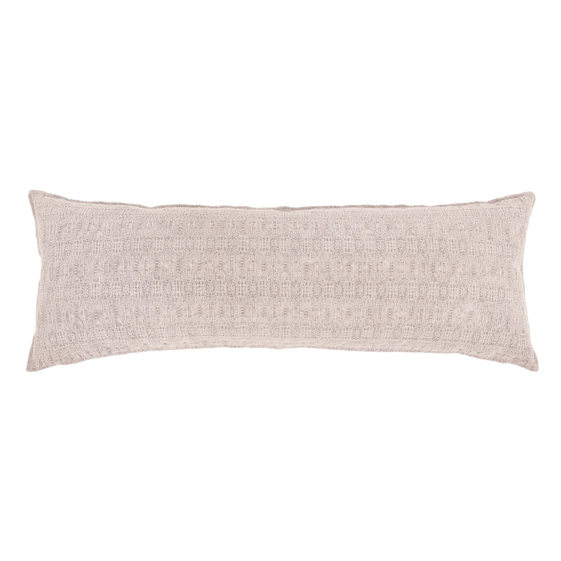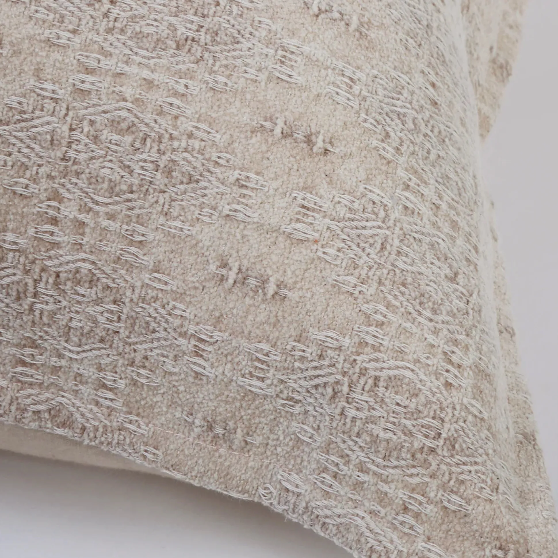 A soft velvet square pillow with a geometric embroidered pattern on the front.