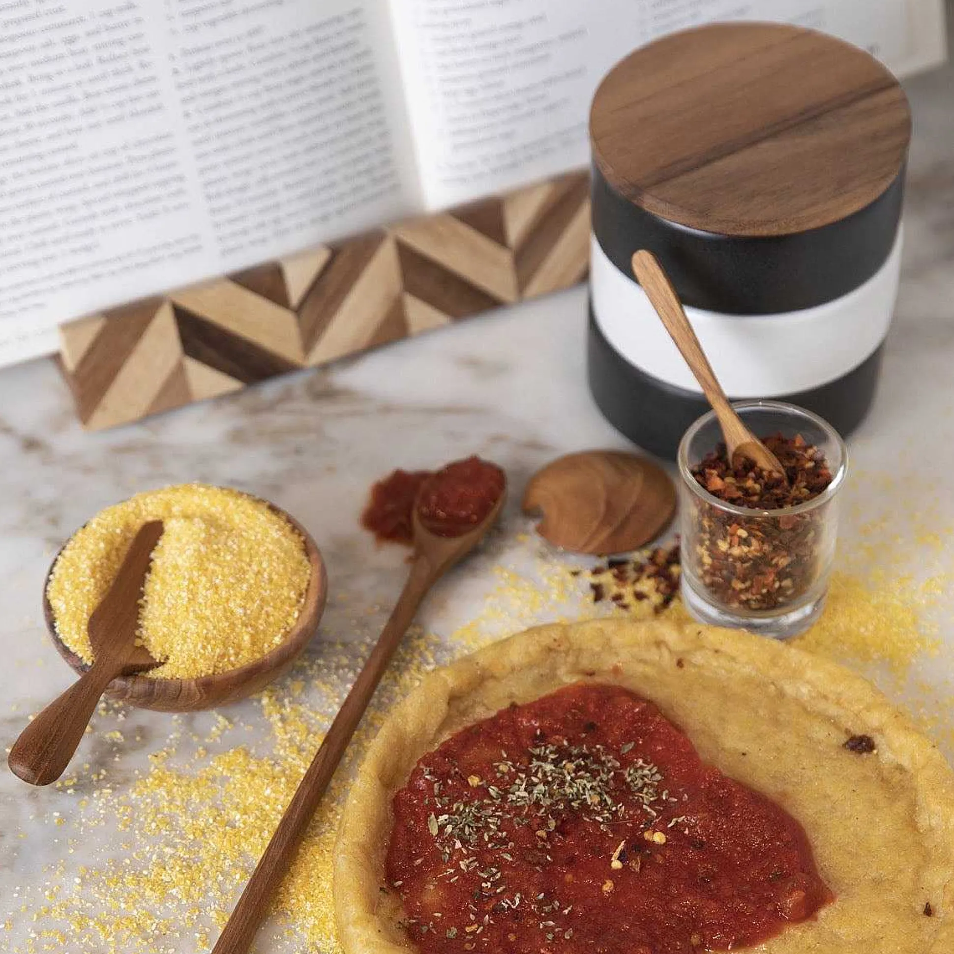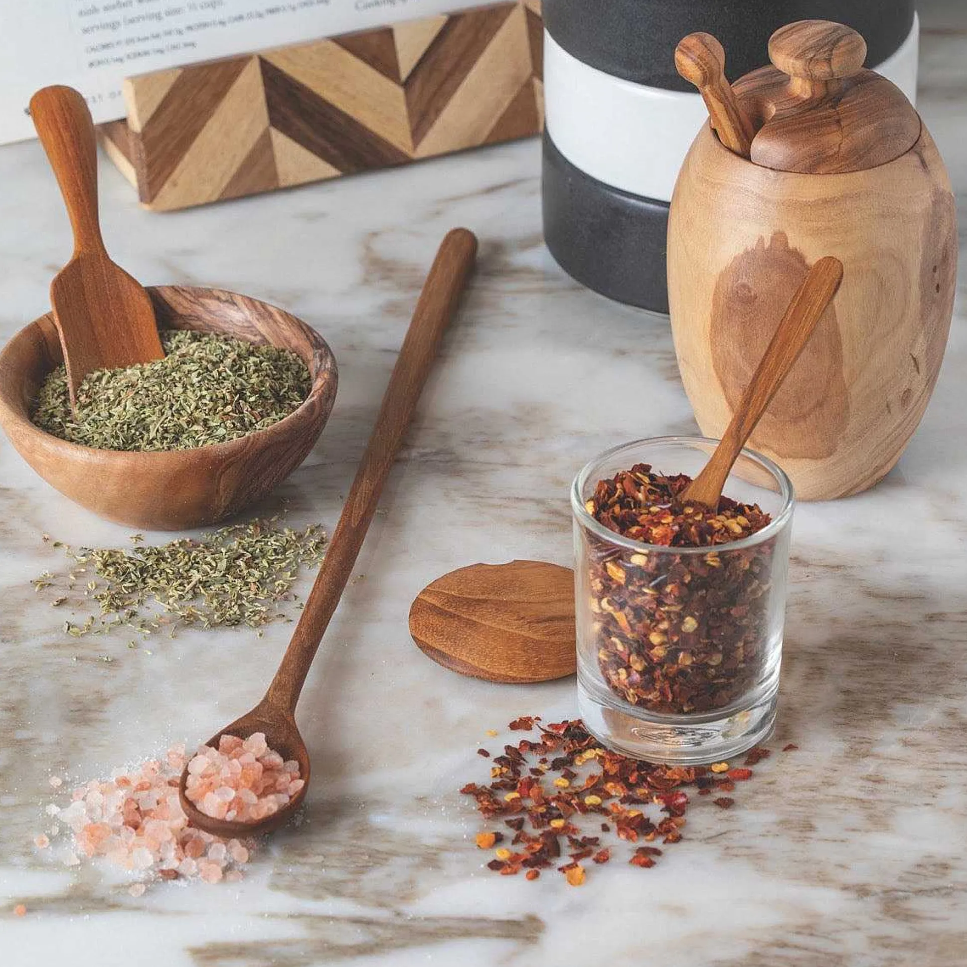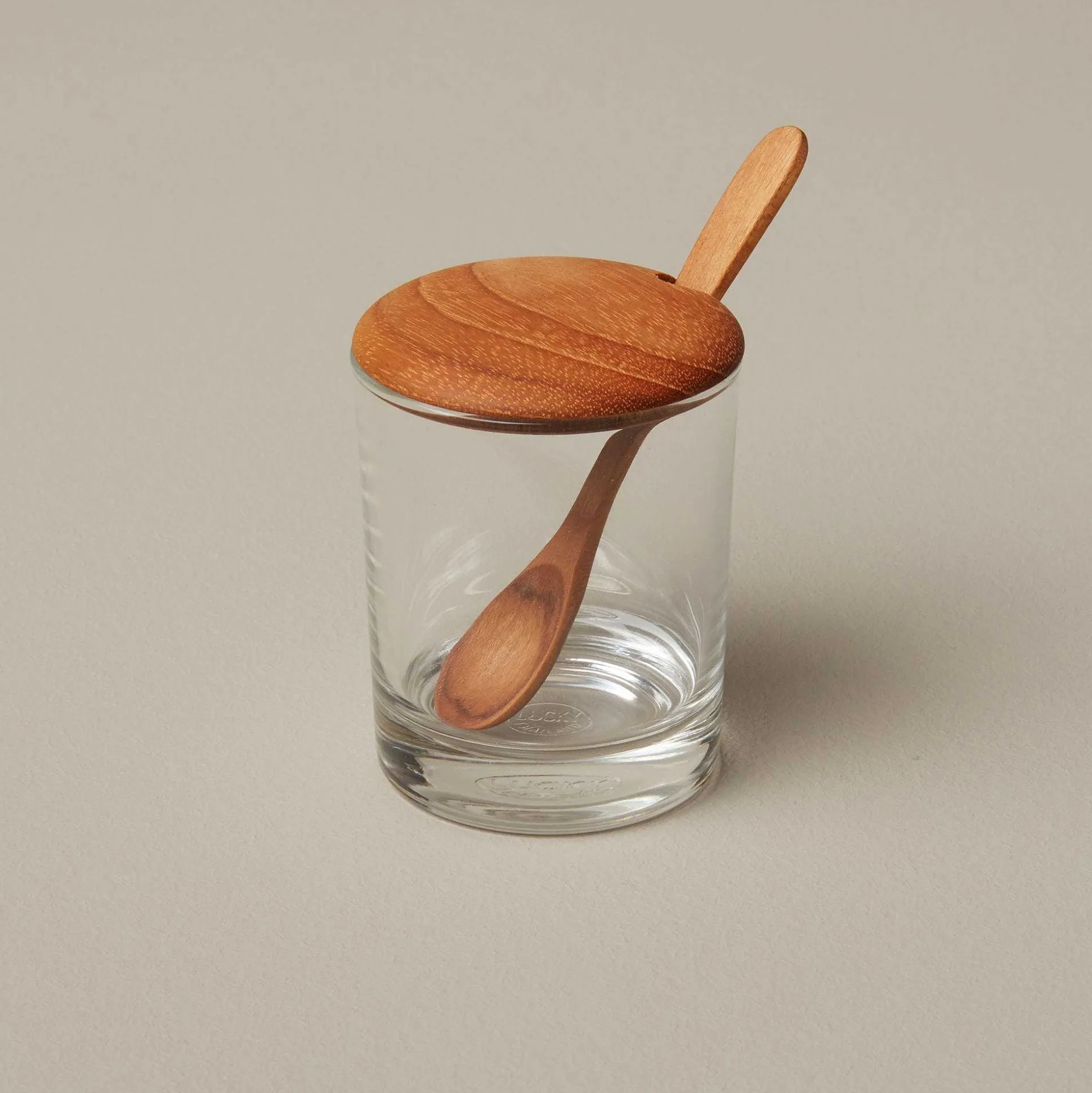 - Measurements: 2 oz., 2″ dia x 2.75″, 3.75″ Spoon.