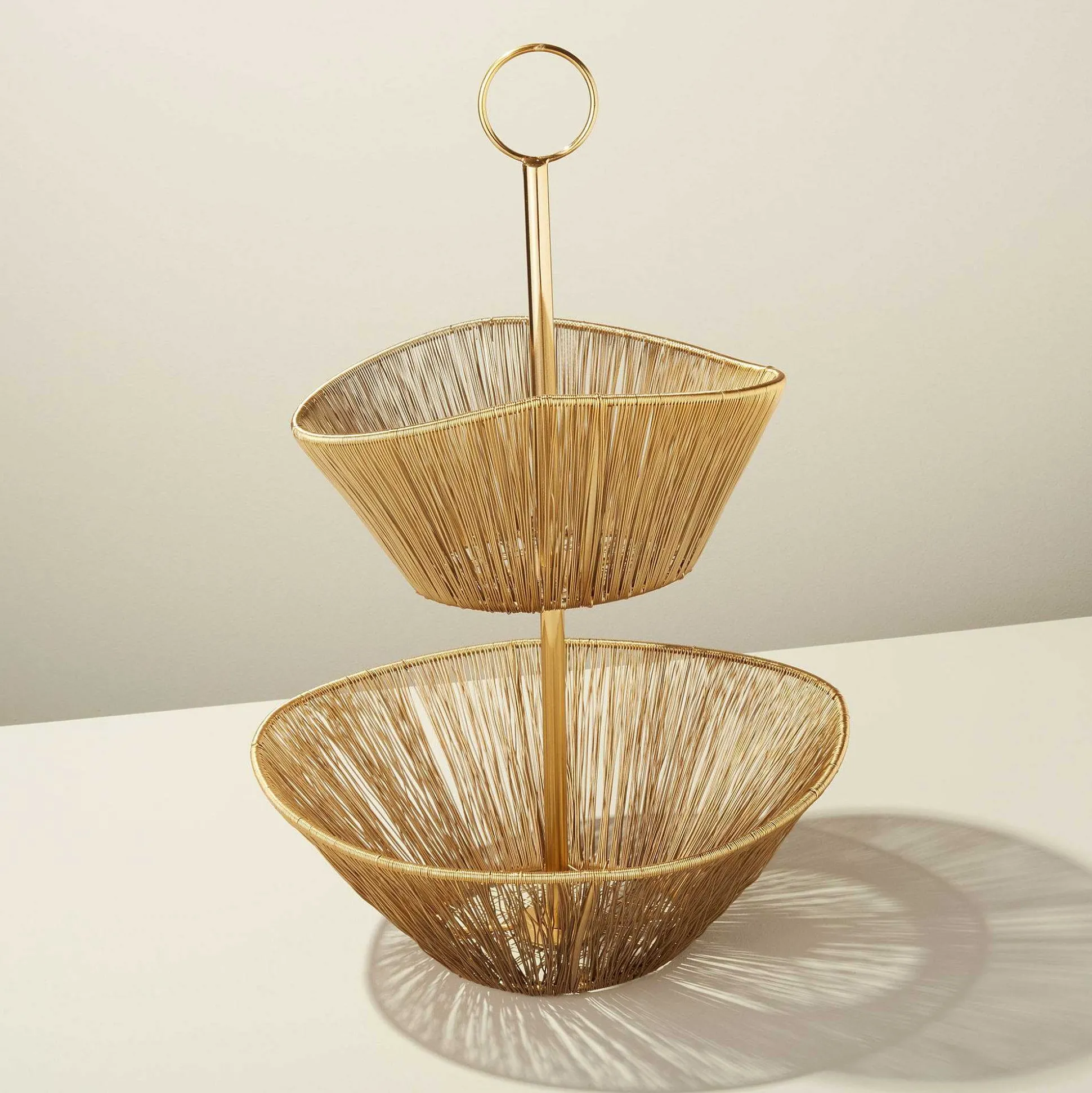 All that glitters may not be gold, but this beautiful two-tiered basket certainly is. Add a little sparkle to your home with our Luxe collection, featuring premium quality dining decor in your favorite shades of gold.