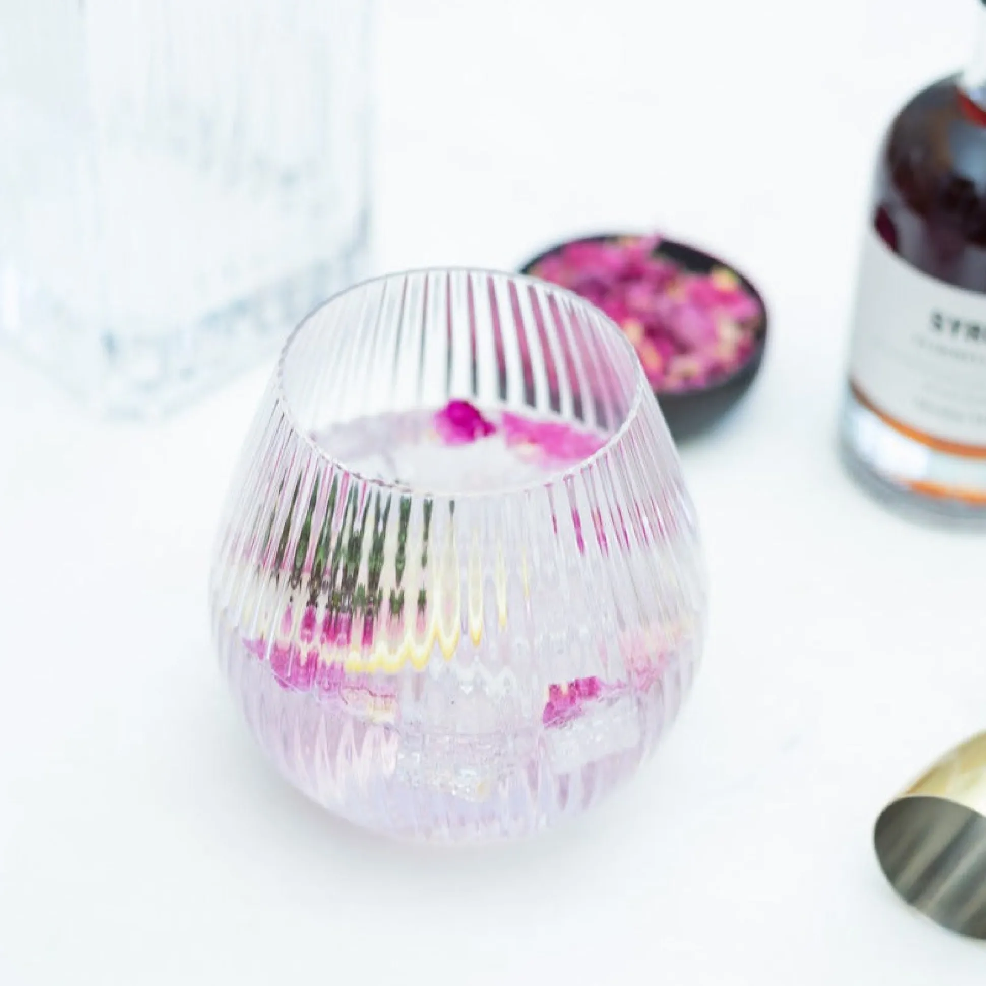 The Hayworth collection is all glamour and is an optical showstopper at the bar! Designed with an Art Deco influence, these chic bar glasses have a luxurious ribbed finish. This stemless sipper is a unique way to present an old classic with a new twist.
