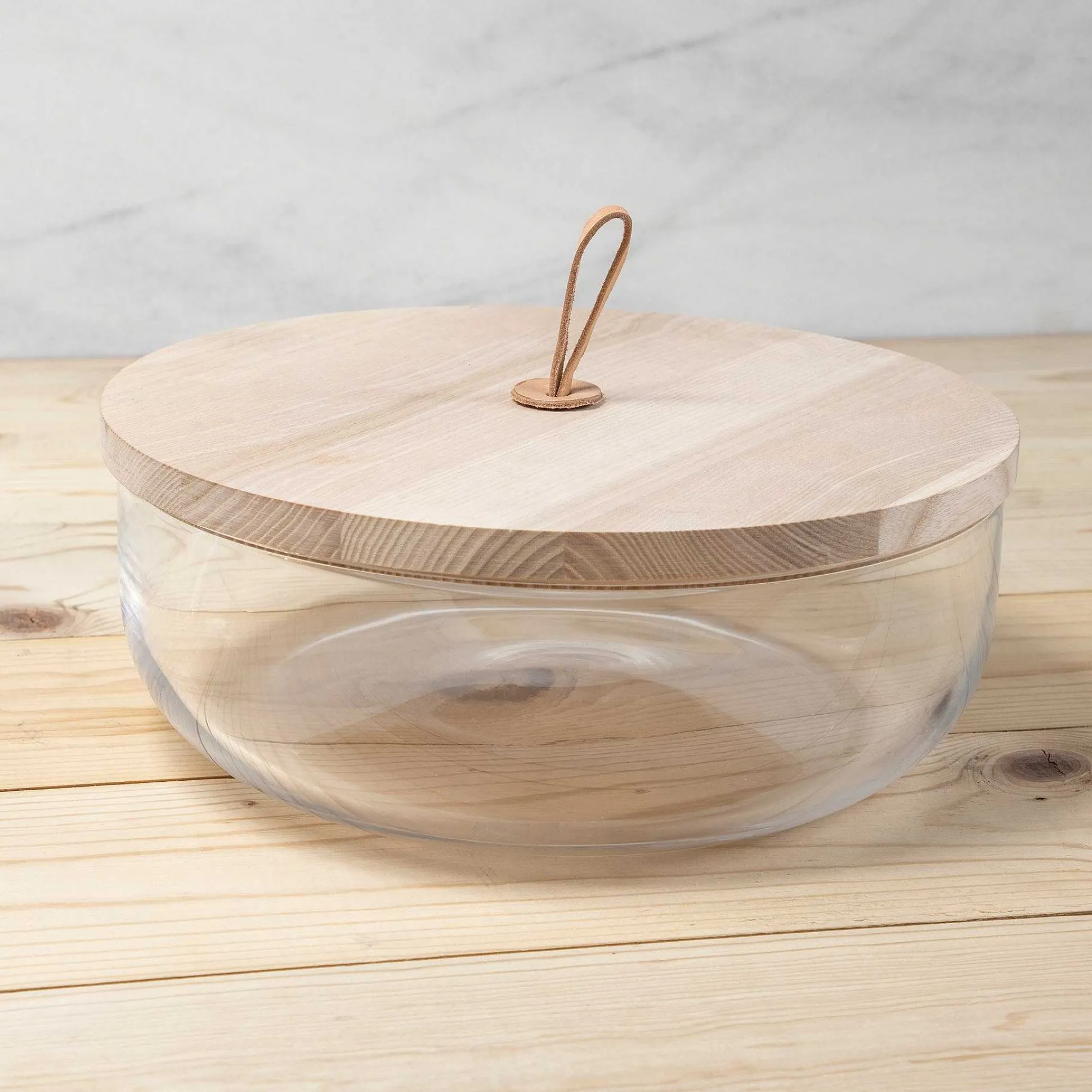 The Ivalo Collection features mixed material designs for modern tabletop use. Mouth-blown glass, hand-knotted leather, sustainably-sourced ash and cork balance textures to complement Ivalo’s minimalist style. Designed for storage and display on the kitchen bench, bathroom shelf or desk.