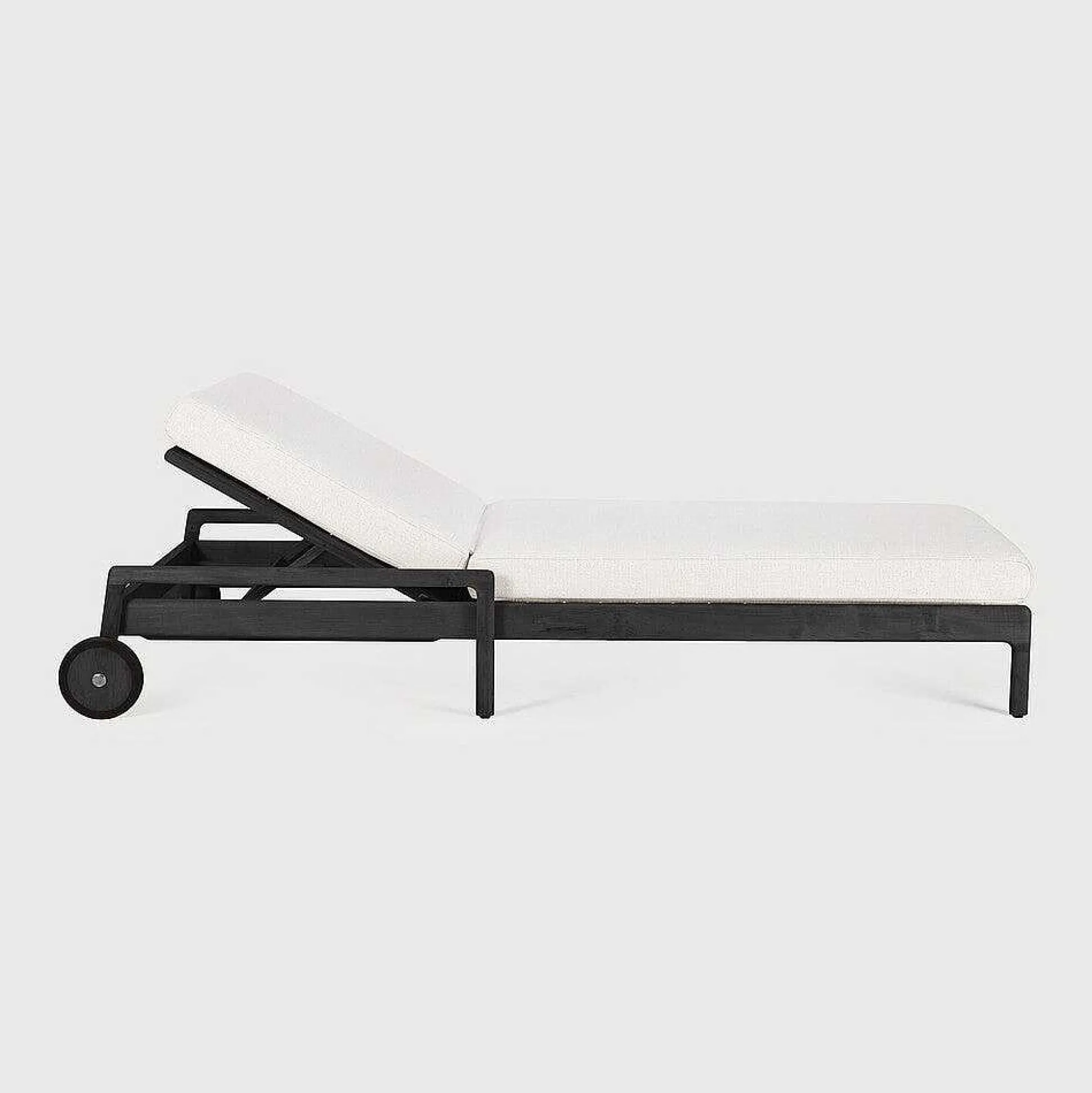 Jack Solid Black Teak Outdoor Adjustable Lounger, Off White Fabric