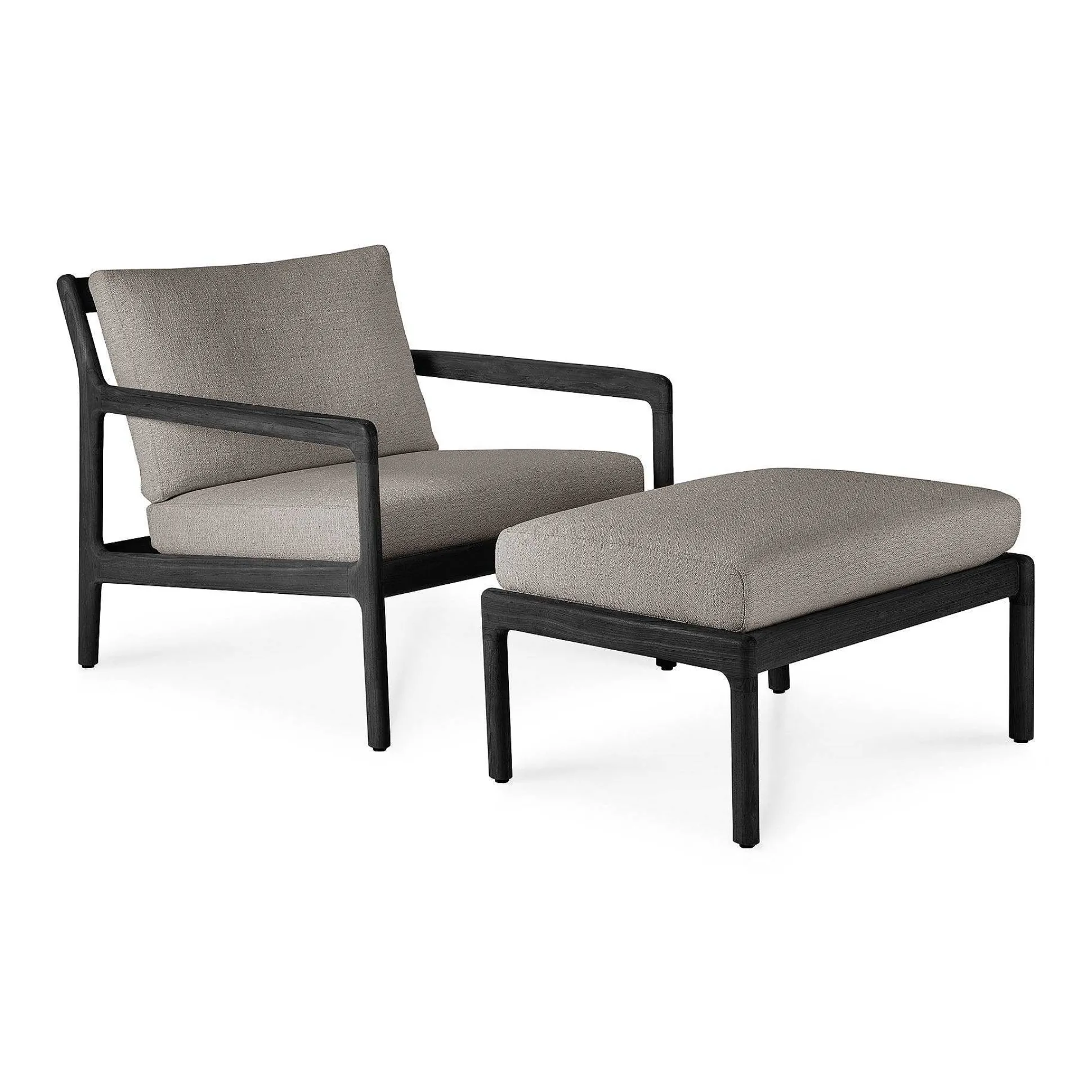 Jack Solid Black Teak Outdoor Footstool, Mocha