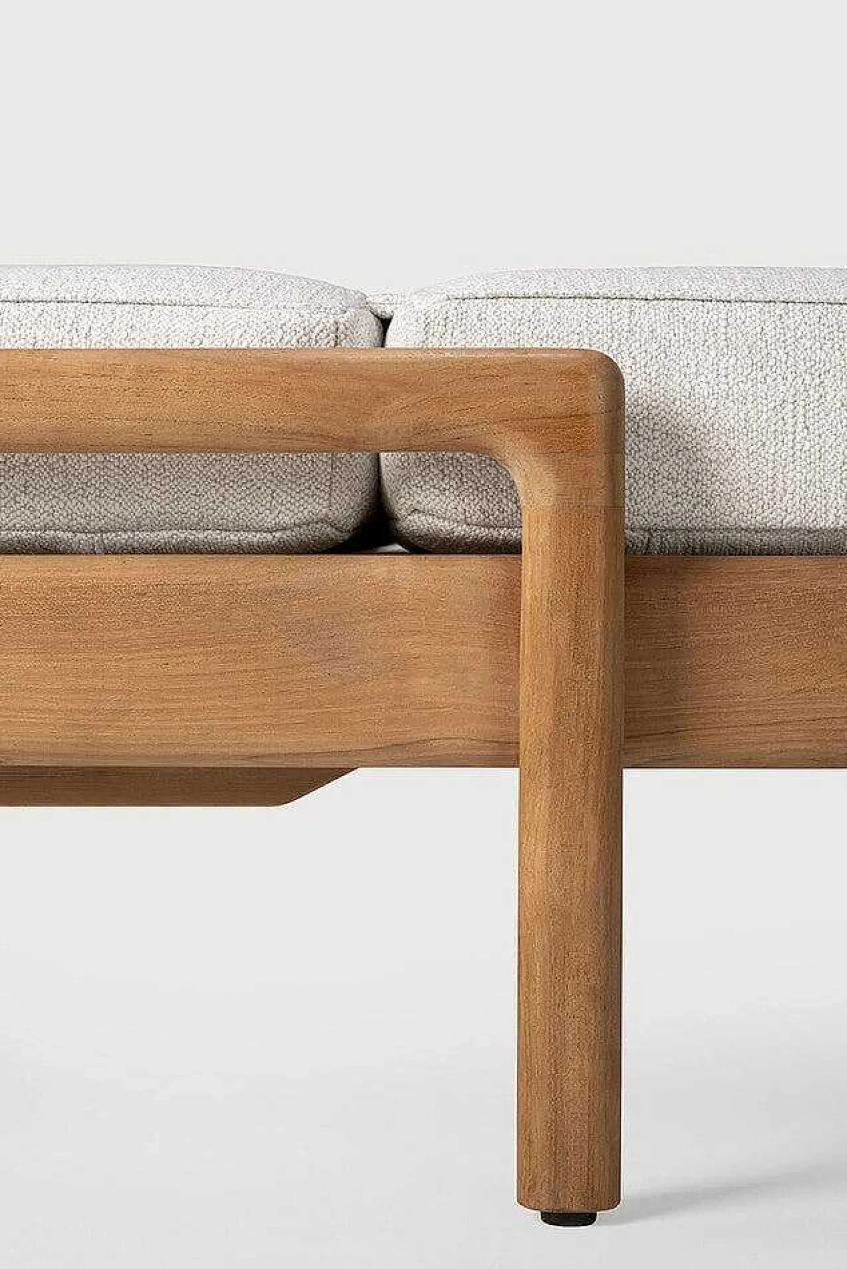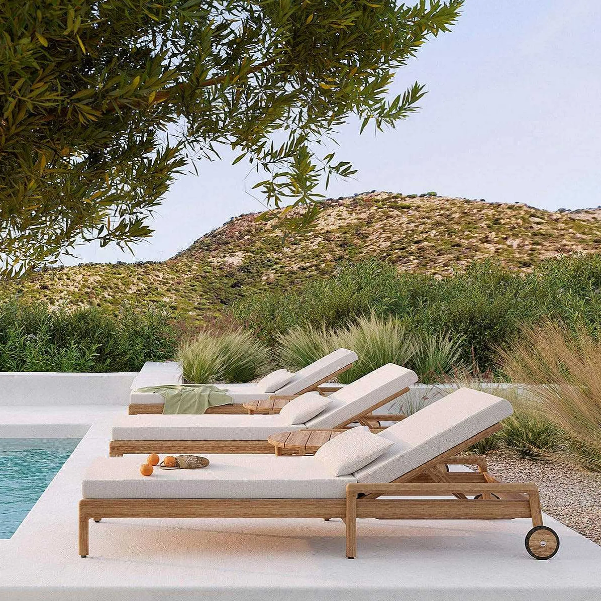 Jack Solid Teak Outdoor Adjustable Lounger, Off White Fabric