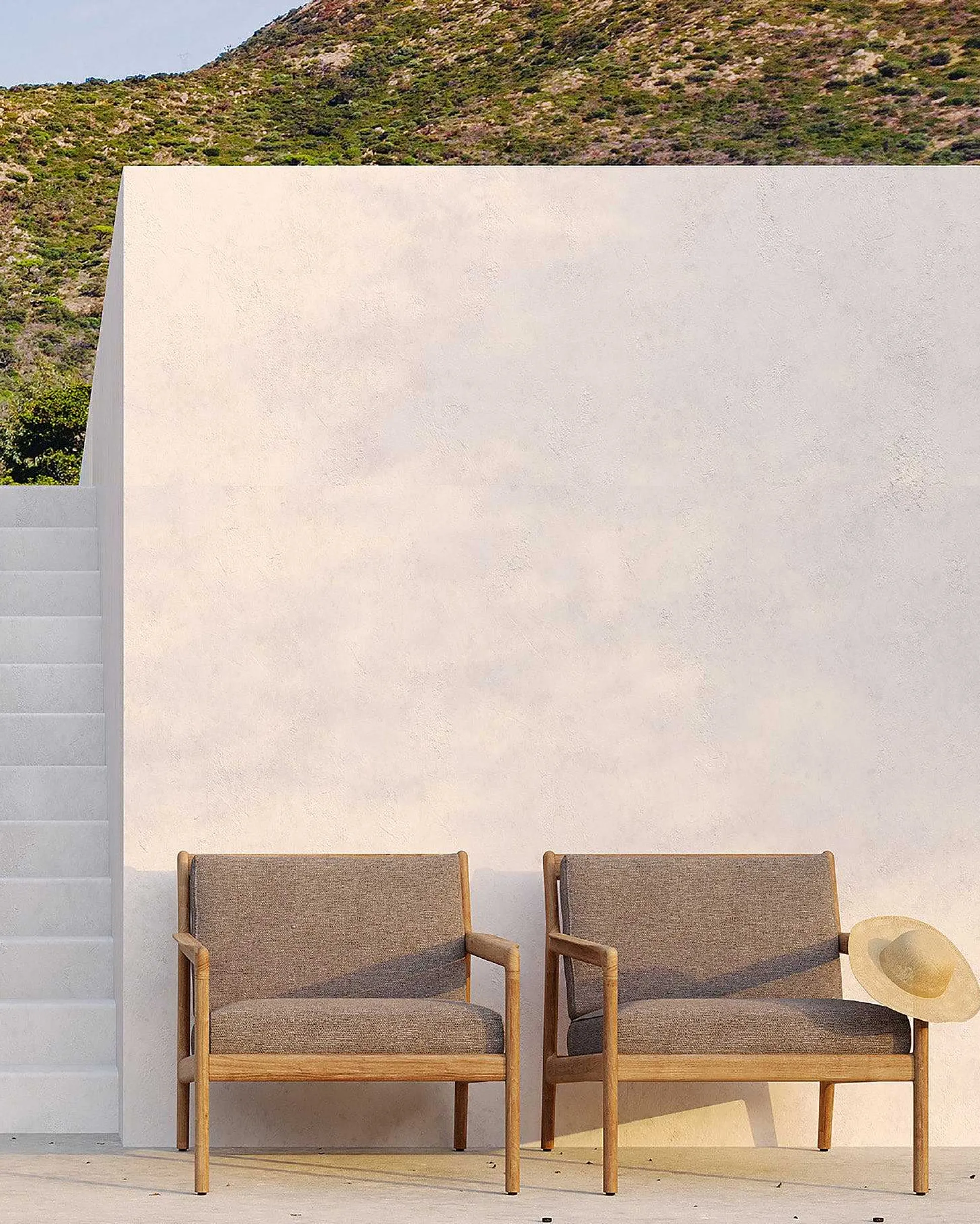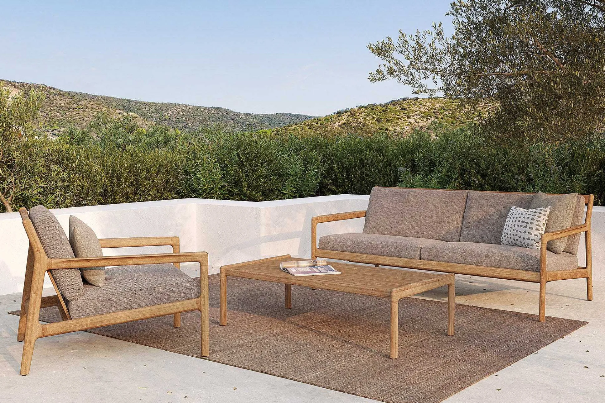Jack Solid Teak Outdoor Lounge Chair, Mocha Fabric