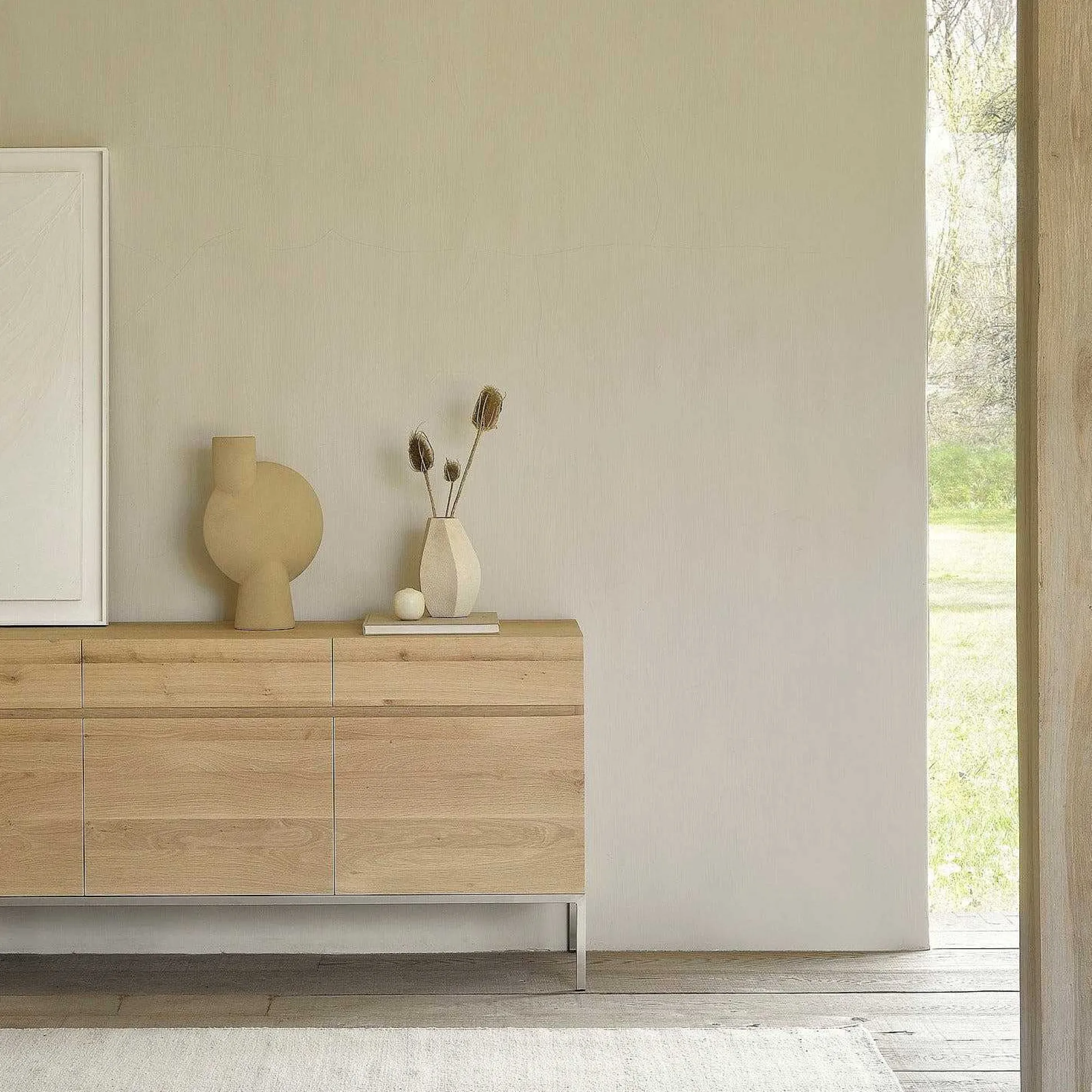 A clean and pure look with stainless steel legs, the Ligna sideboard offers a perfect storage facility for the kitchen, living room or dining room.