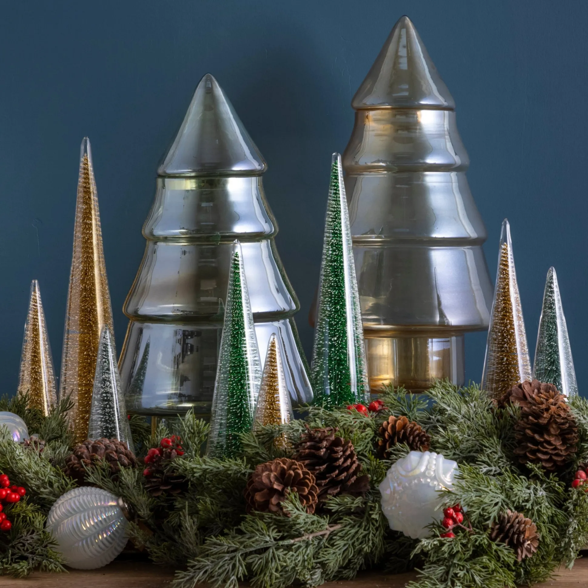 From trimmings and decor to decadent bites, biscuits and more, add a little magic to your home with our luster glass tree cookie jars. A glowing addition to any holiday spread, use to store your favorite holiday treats or incorporate as a festive accent! Pair with our opalescent glass ornaments to complete the look.