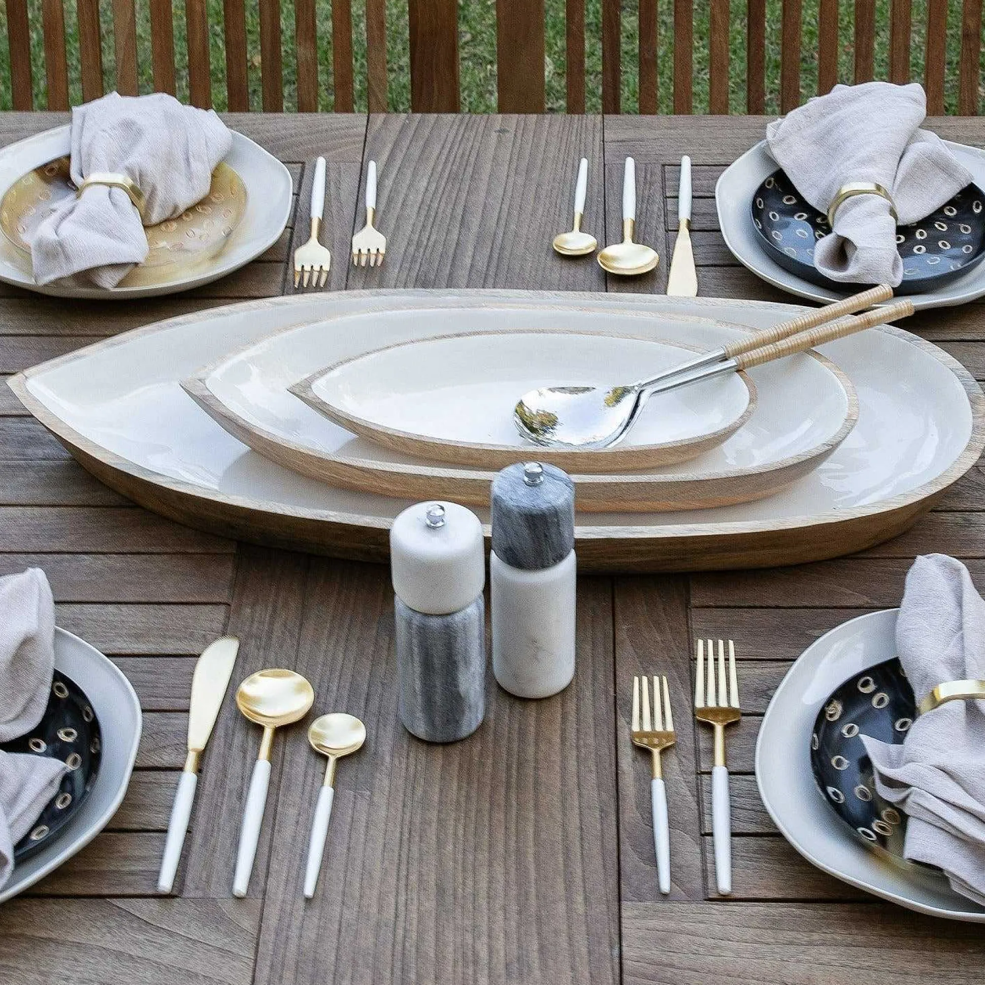 With its eye-catching shapes and sleek design, the Madras Mango Wood Oval Dish is a true showstopper. Handcrafted from protected groves, each piece is uniquely infused with its own set of natural striations and subtle highlights.