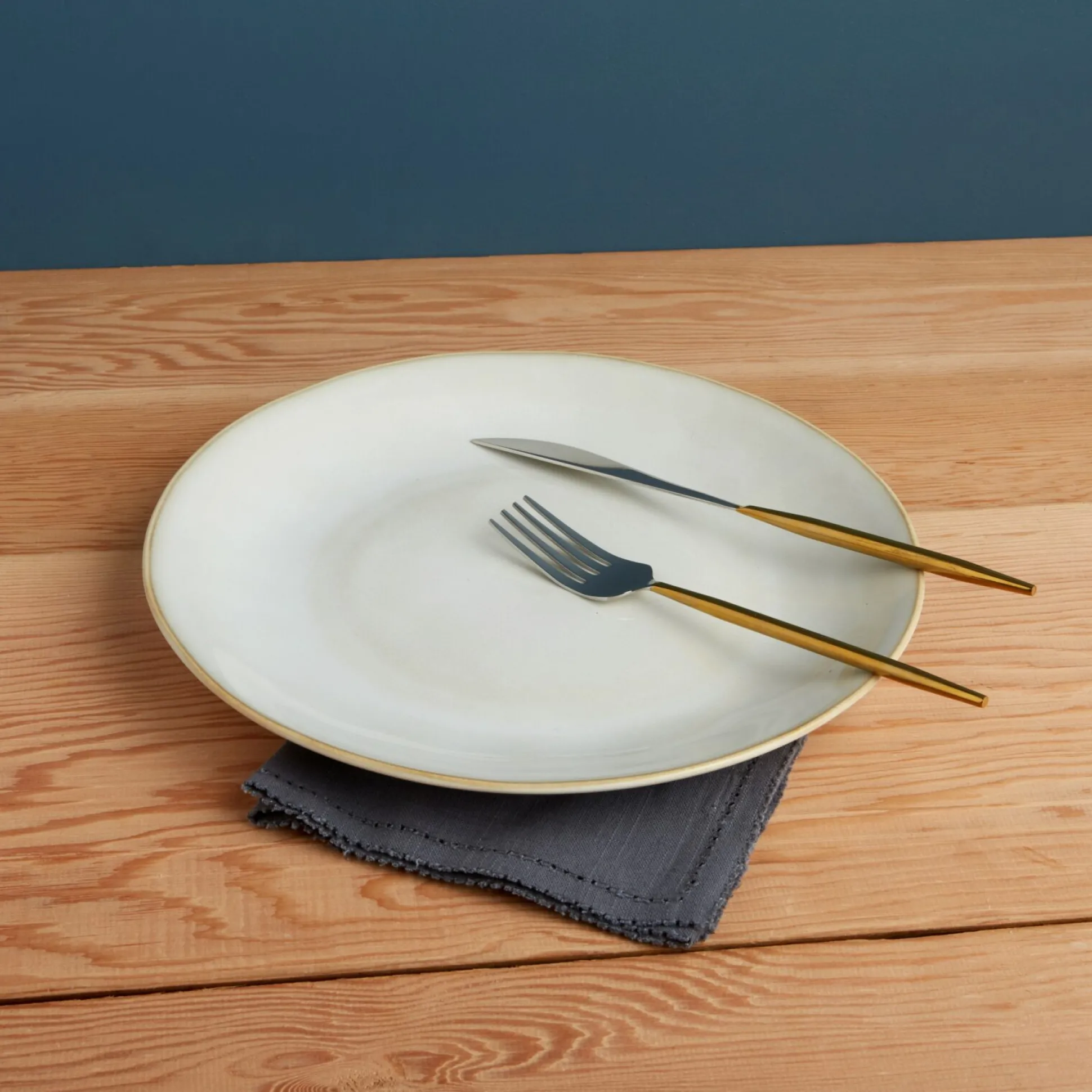 Our Maté dinnerware unveils a softer, minimal aesthetic with an antique white reactive glaze revealing a subtle haze of tan and taupe. Handmade in Portugal, Maté boasts a lustrous finish with minimal ombre coloring that creates a striking dining display. The Maté collection aims to reduce waste and lessen its ecological footprint by leveraging solar energy, and water recovery/reuse during the making process.