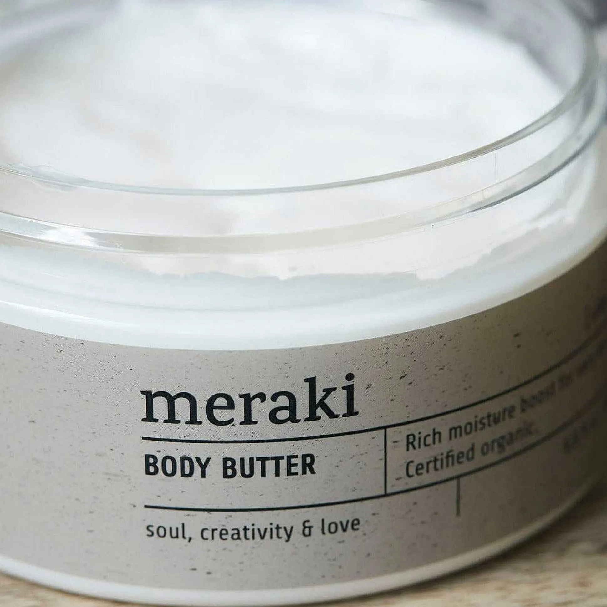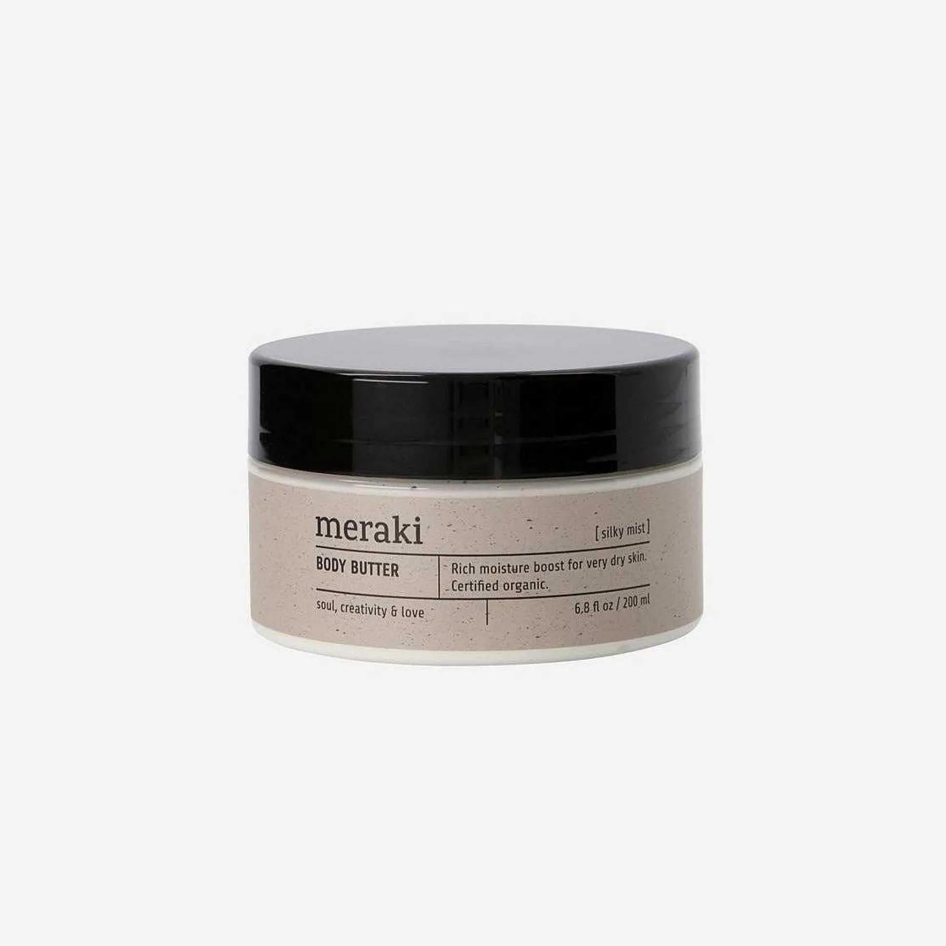 A certified organic and deeply nourishing body butter from Meraki. The silky-smooth moisturizer does not leave a greasy sensation. Rich in organic ingredients such as aloe vera, shea butter, as well as organic oils from almond, sunflower and olive. They all prevent the skin from drying out, leaving it soft and moisturized. Certified organic by ECOCERT Cosmos. Notes of Silky mist: White citrus blossom, different citrusy scents with a sweet touch. Suitable for daily use and for all skin types.