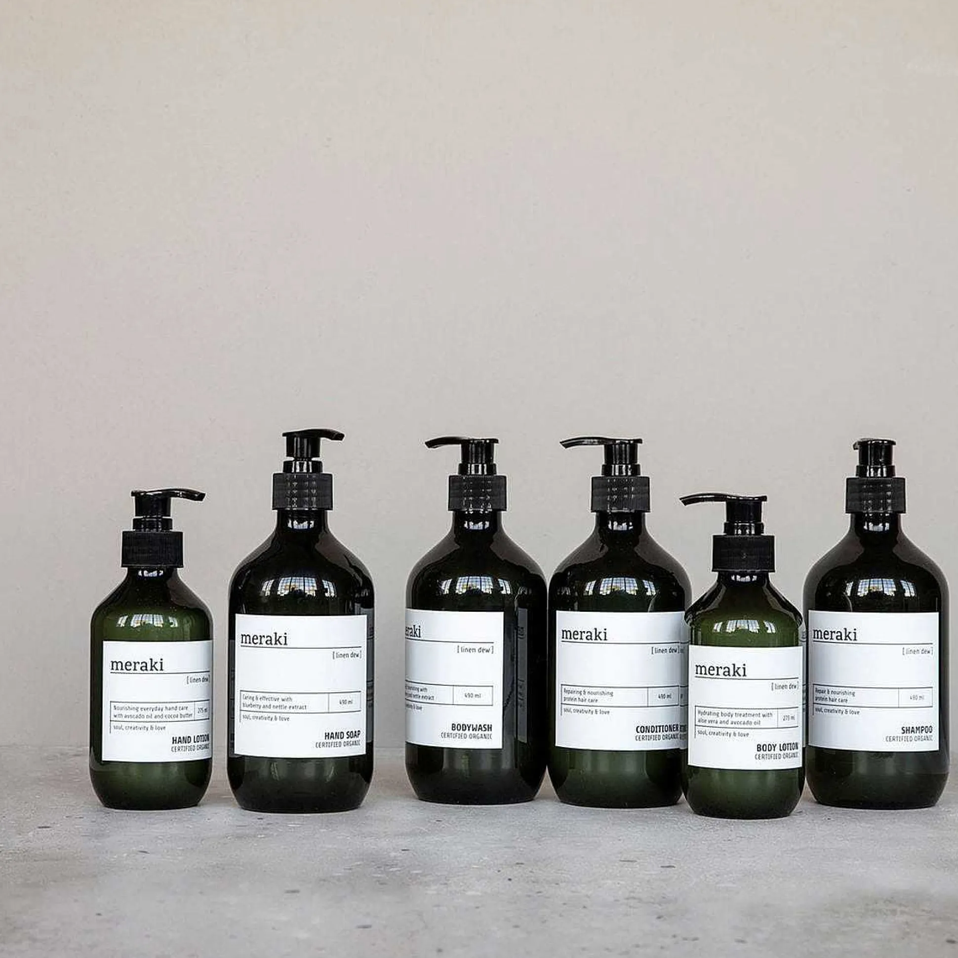 This hand lotion, Linen dew, from Meraki is perfect for you who love aesthetic skin care products. Our certified organic hand lotion contains organic aloe vera, avocado oil and cacao butter which care, moisture and soften the hands without being greasy. Place your hand lotion in the bathroom or kitchen and use after doing dishes or when your hands need extra care. It is suitable for everyday use and for all skin types. Note: Combine with a wall mounting for practical storage.