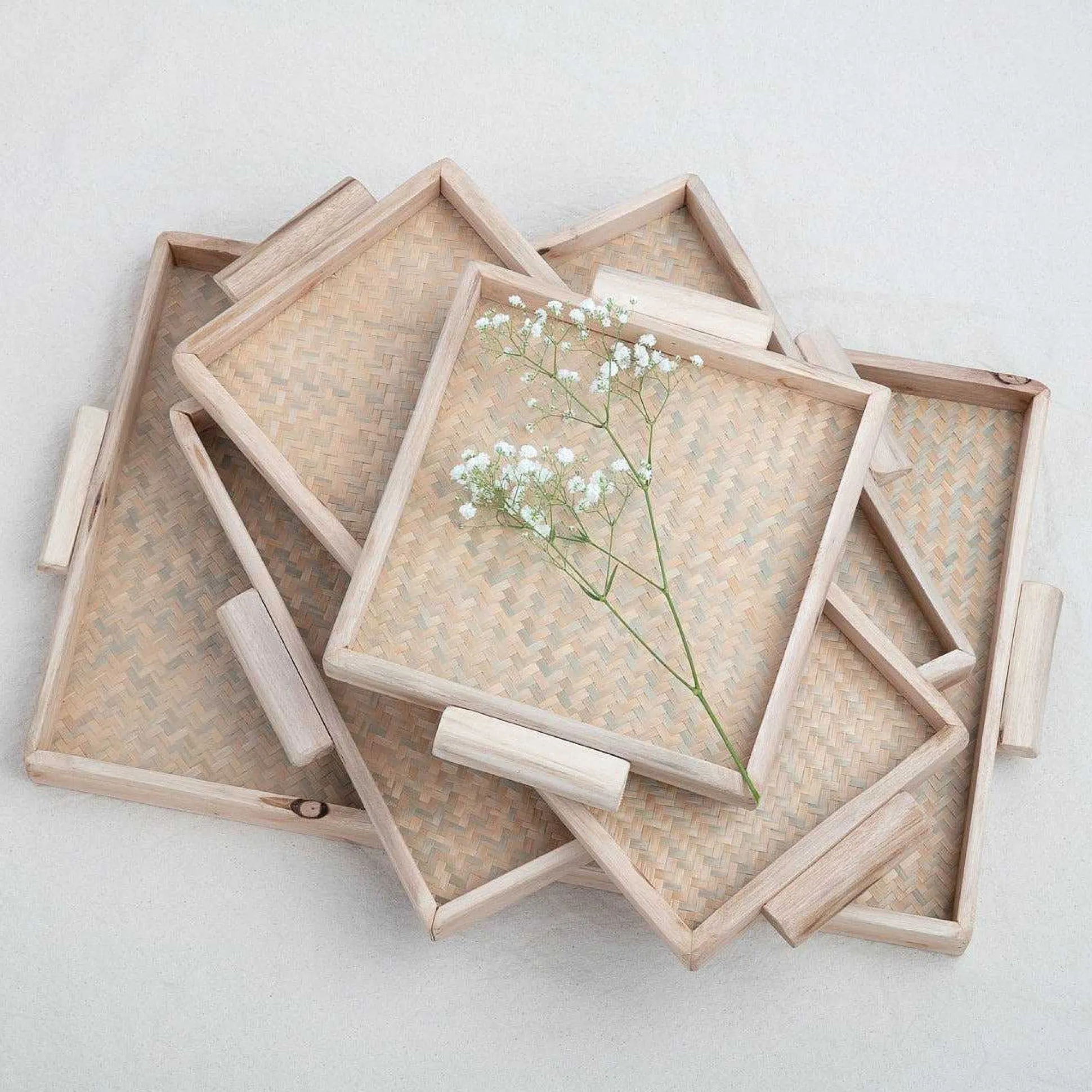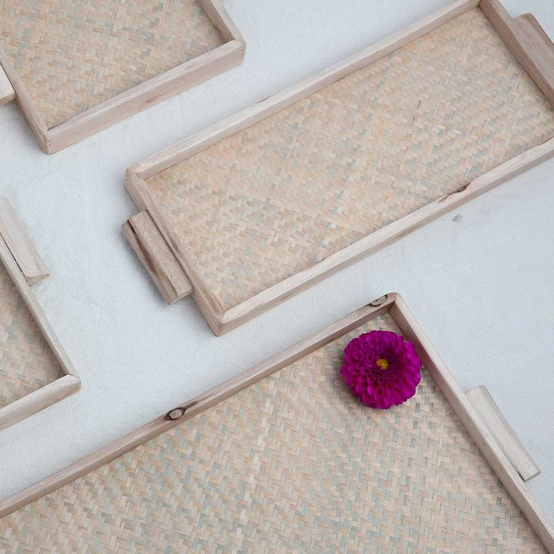 Our reclaimed wood trays meet woven seagrass in our latest assortment of elegant, eco-friendly pieces. Boasting a lighter color palette, these natural beauties include a touch of verdant texture for a modern, artisanal accent to any space.