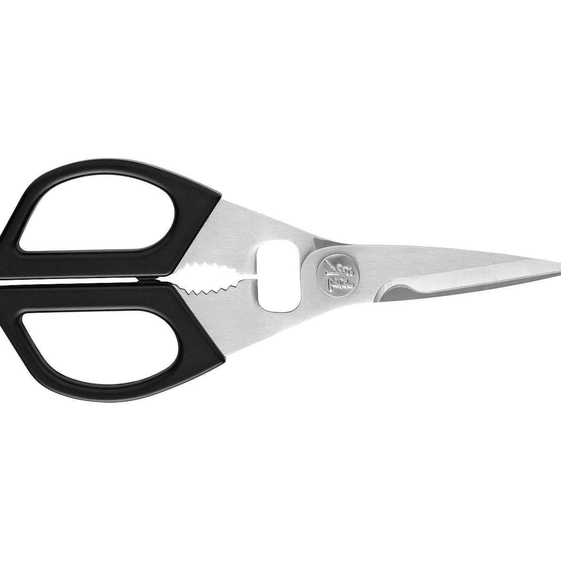 Set includes: 3.5-inch paring, 5.25-inch prep, 5.5-inch santoku, 8-inch chef’s, 9.5-inch bread, shears, sharpening steel, block