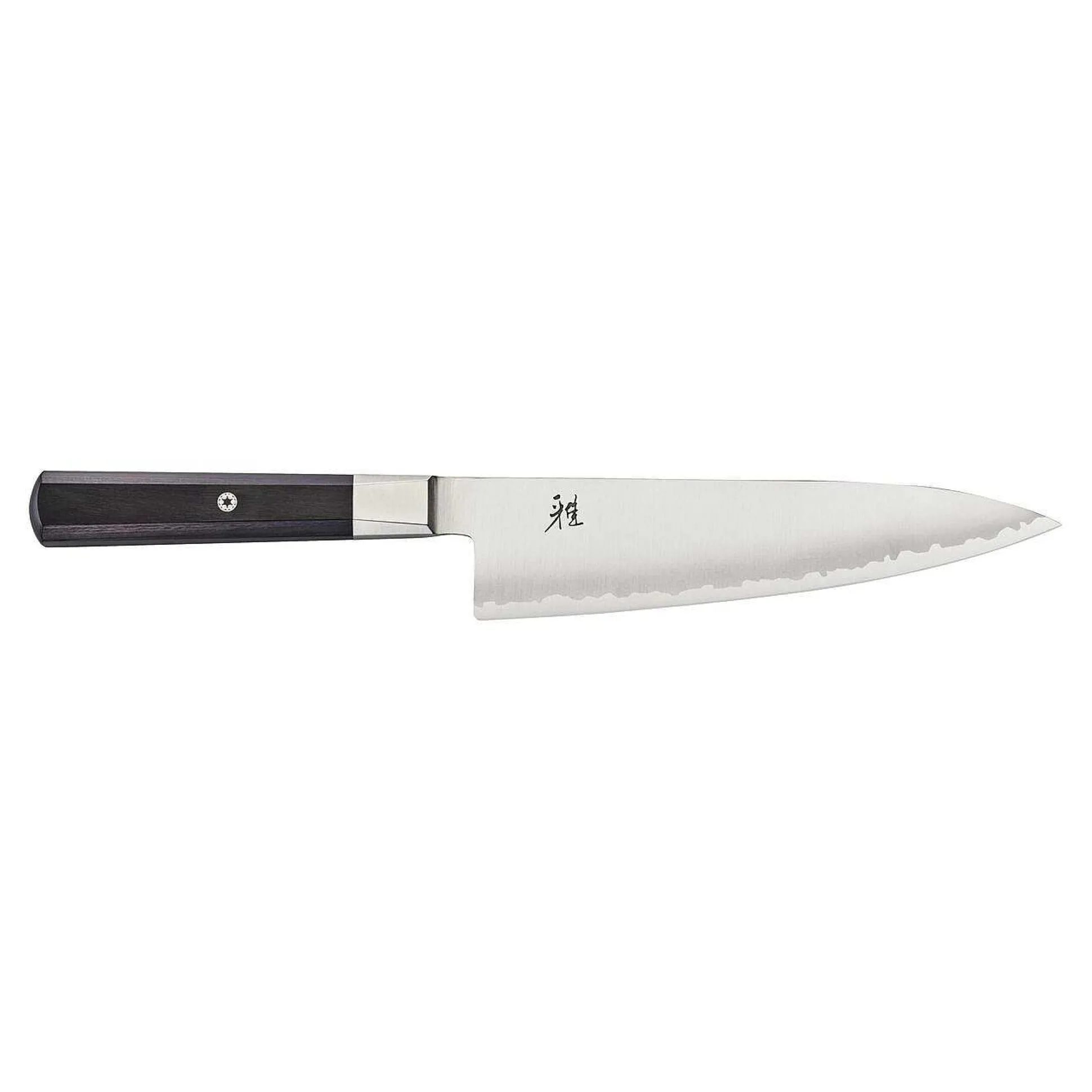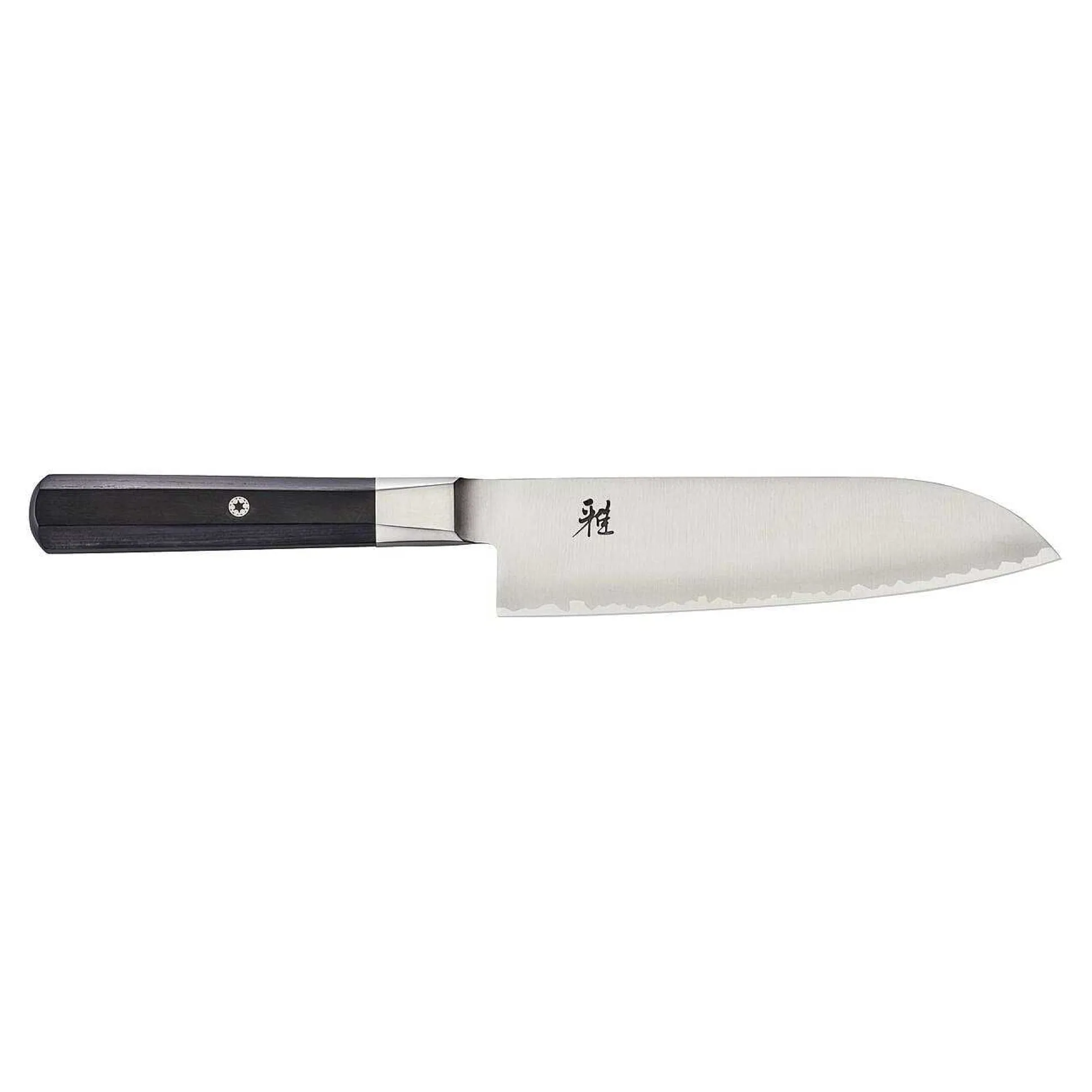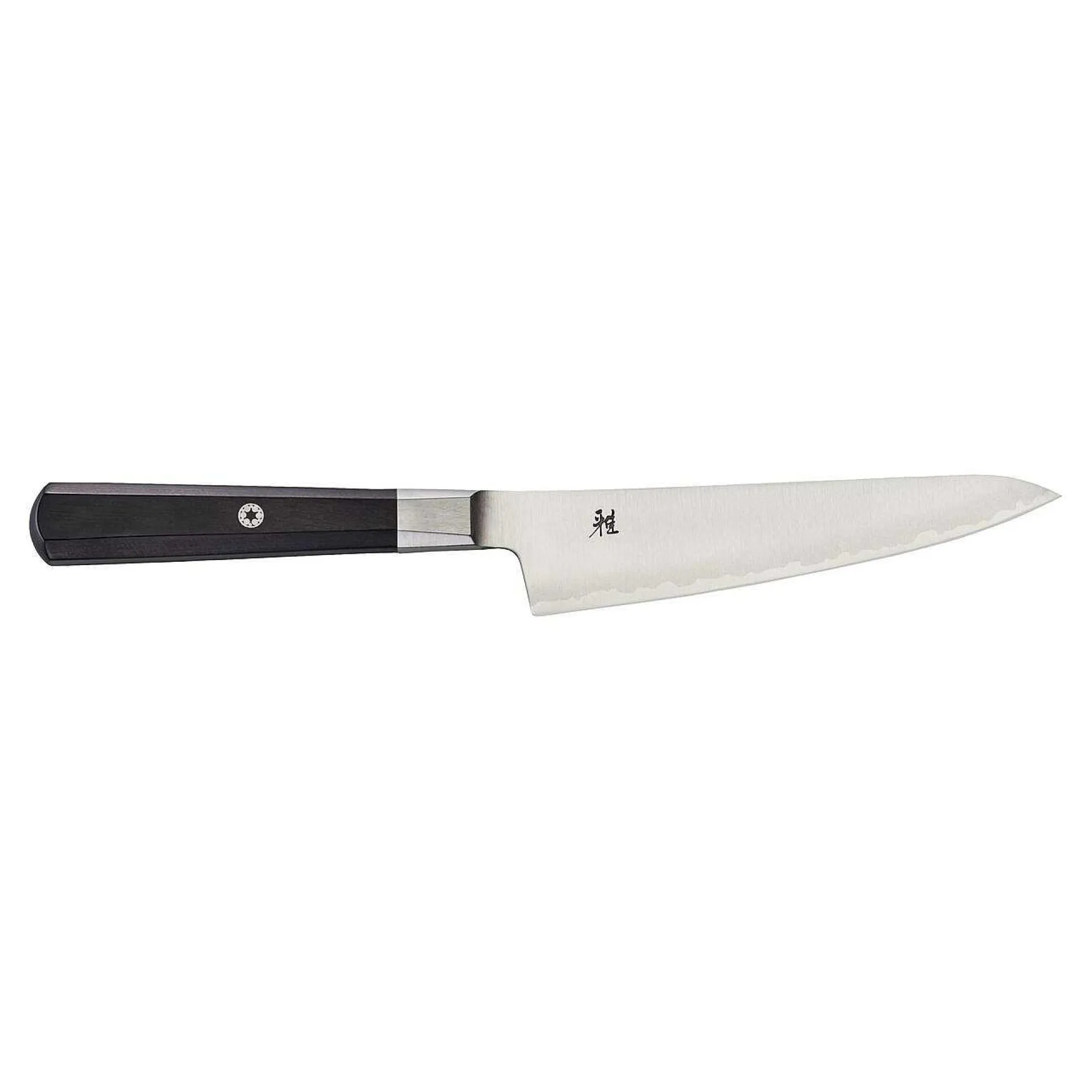 - Mirror-polished blade features Japanese design details: sandblasted katana edge and embossed MIYABI logo