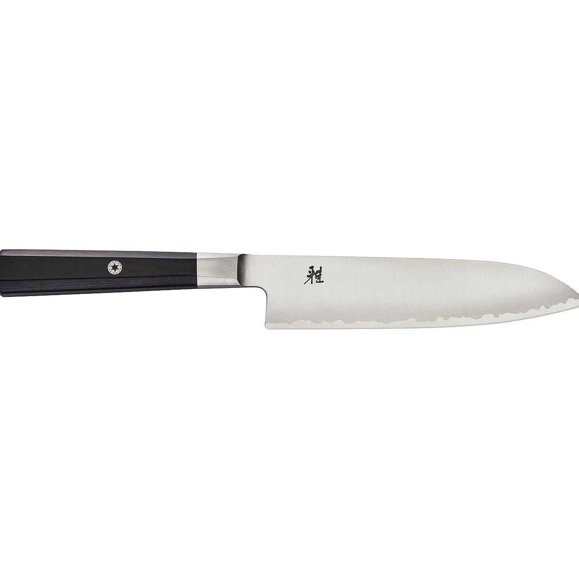 - Mirror-polished blade features Japanese design details: sandblasted katana edge and embossed MIYABI logo