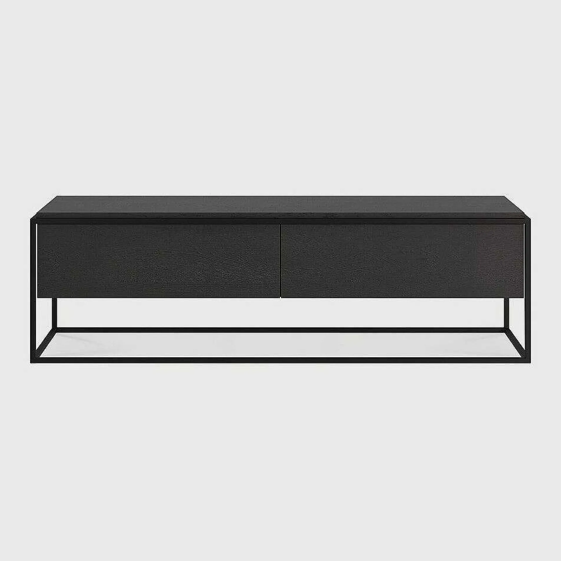 - The Monolit Media Console features 1 push open drawer and 1 flip-down door.