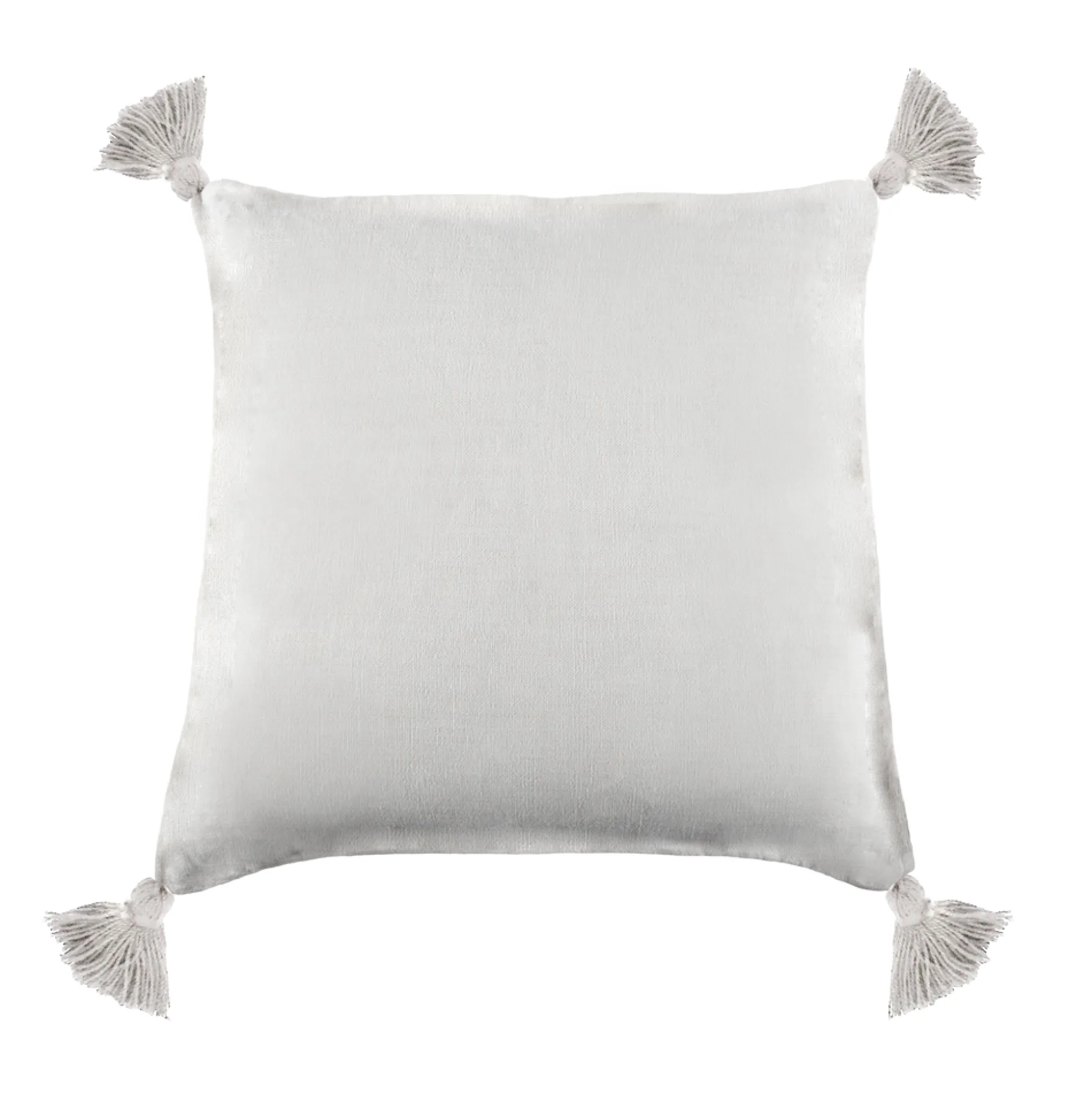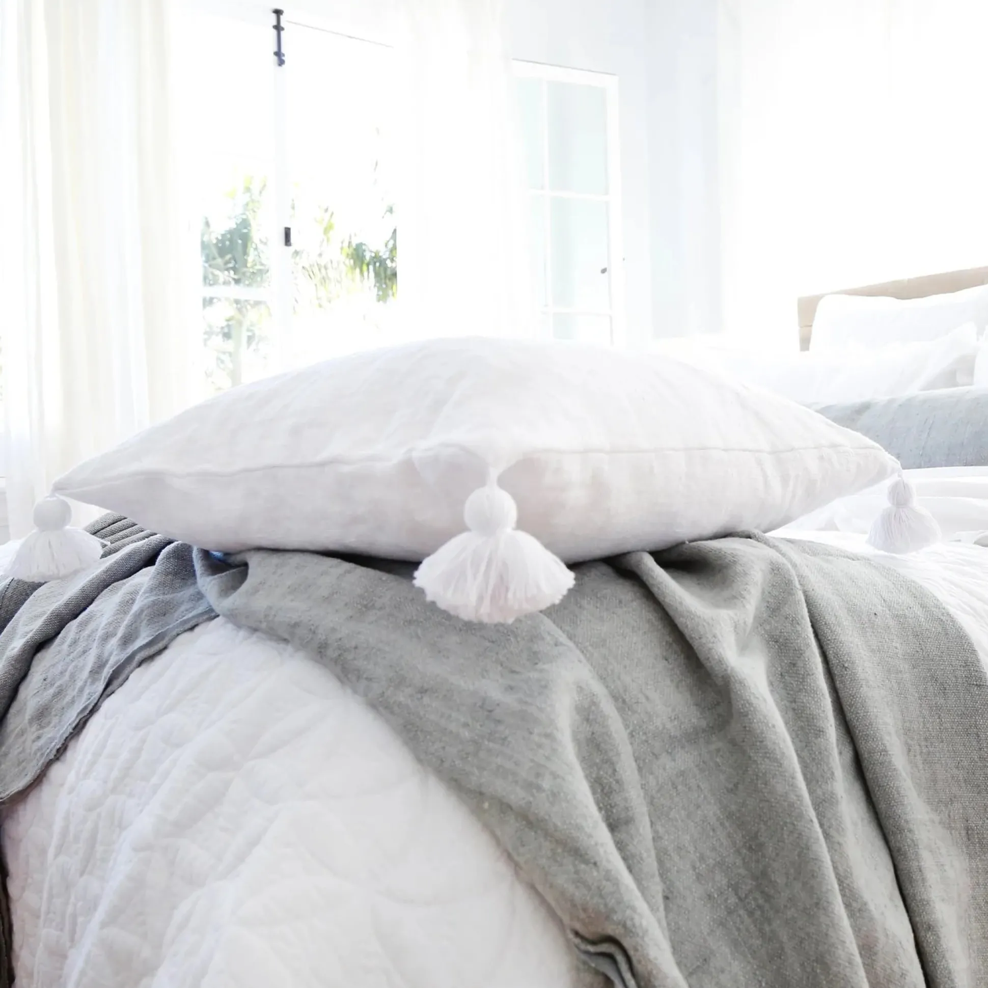 This 100% hand-loomed, heavy-weight linen pillow features soft tassels on each corner.