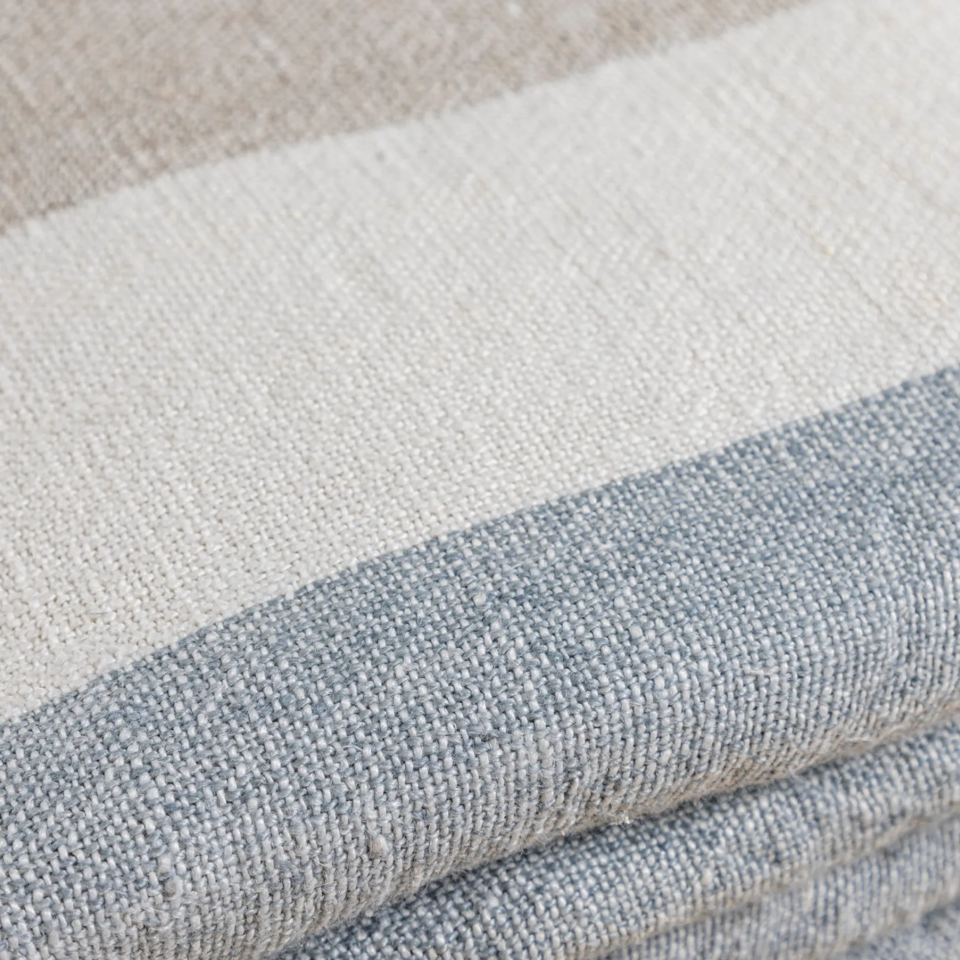 The Monterey collection is a 100% hand-loomed, heavy weight linen that features a 1/2″ flange and broad coastal stripes.