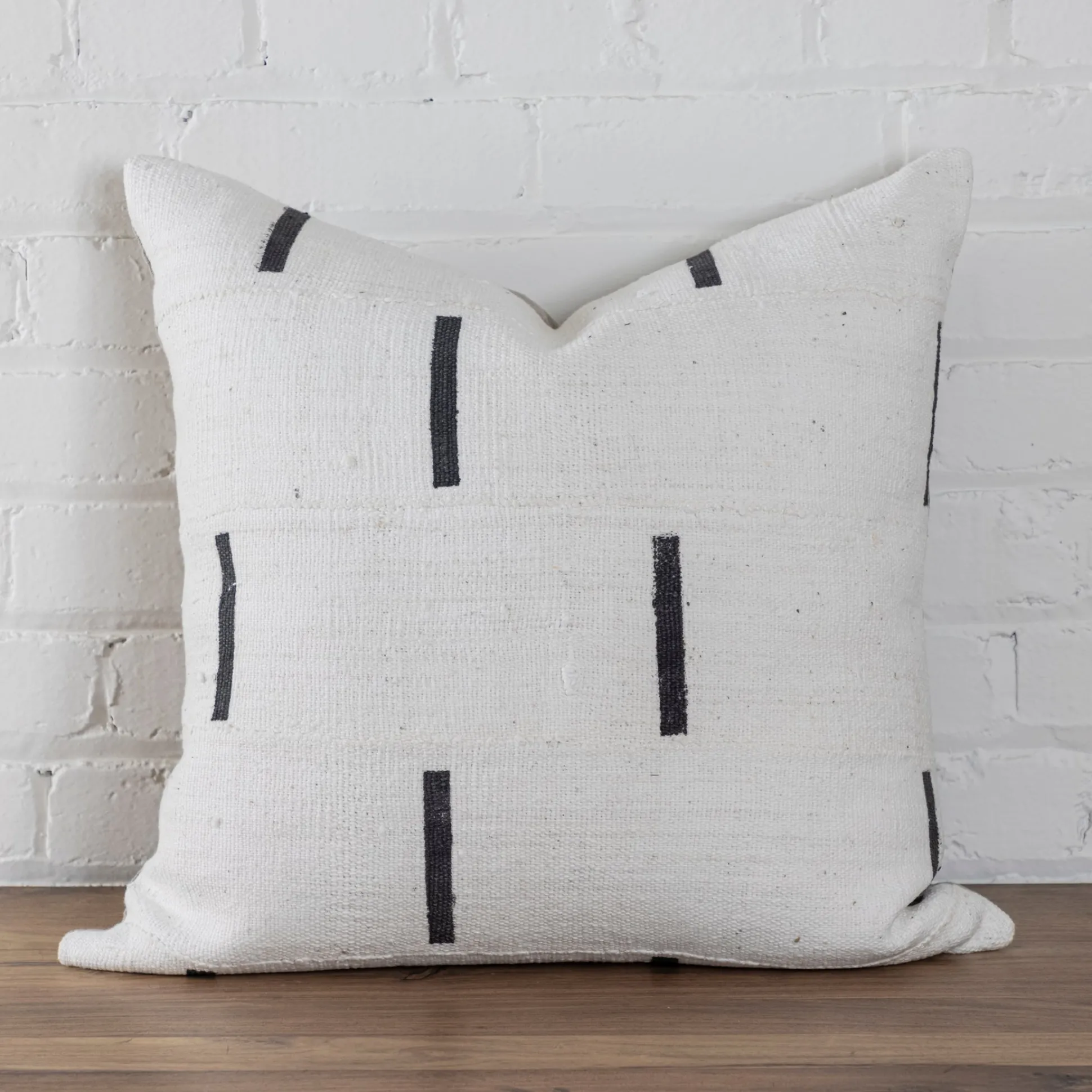 Mud Cloth Square Pillow, White with Black Dashes^Be Home Fashion