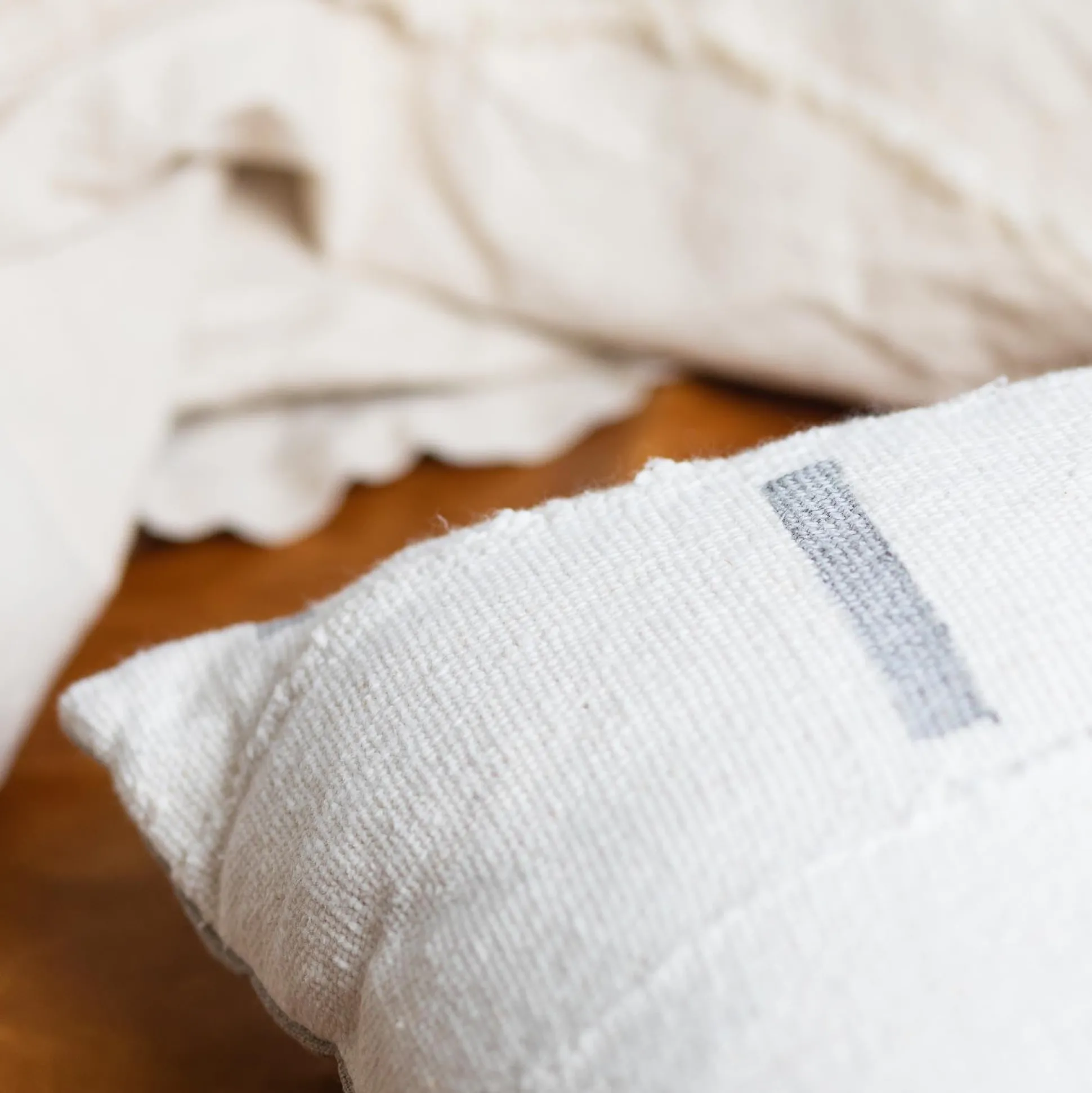 Mud Cloth Square Pillow, White with Grey Dashes^Be Home Outlet
