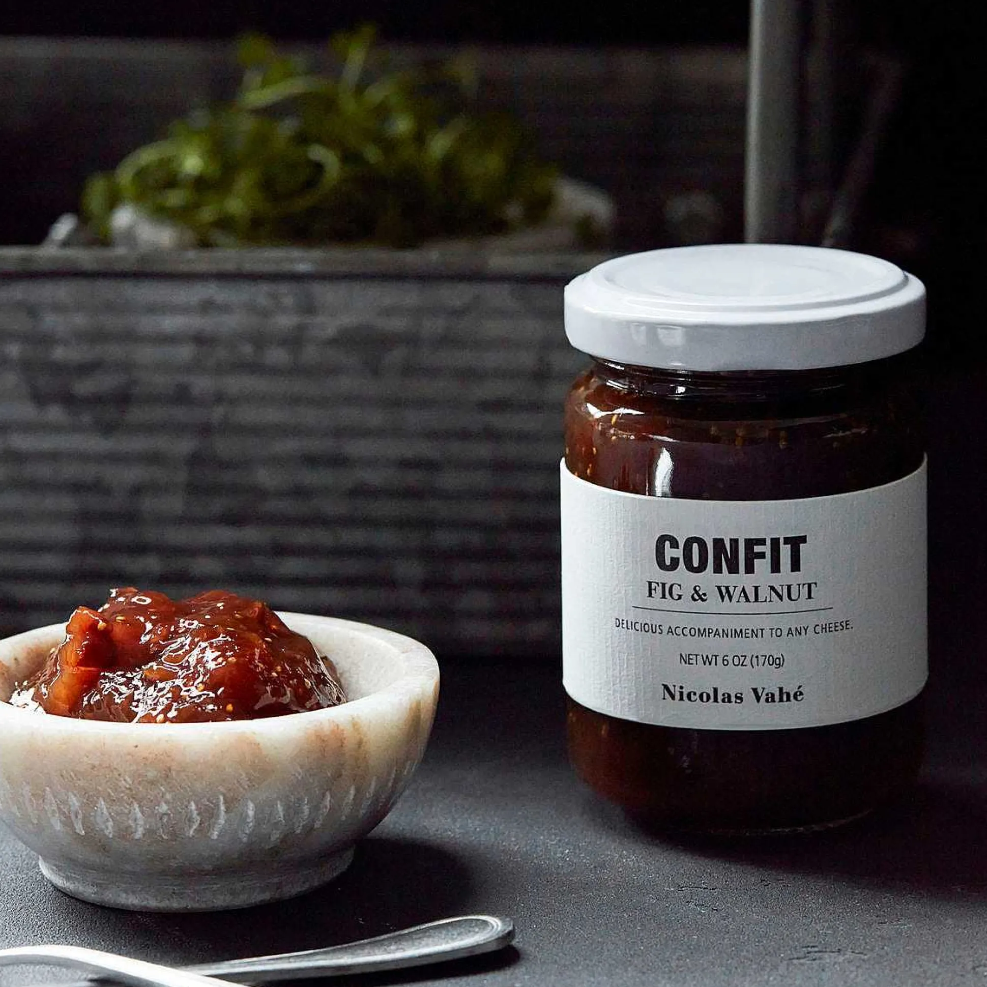 This delicious confit with fig & walnut from Nicolas Vahé suits the cheese table perfectly. The confit is similar to marmalade, but it is made with less sugar and more fruit. The combination of tangy and sweet taste creates a good contras to cheese. Try this confit together with good blue cheese, a goat’s cheese or another kind of strong cheese.