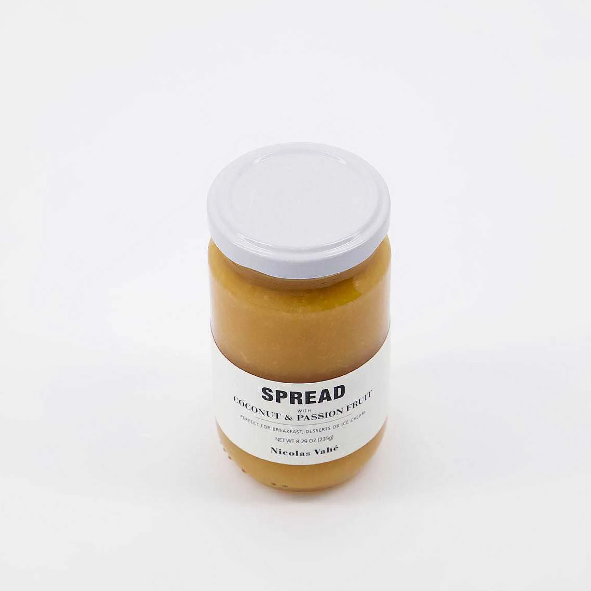 A fresh and delicious jam with coconot and passion fruit from Nicolas Vahé. Enjoy it on a slice of freshly baked bread with butter, or as a topping for pancakes and yoghurt. The carefully chosen ingredients give the jam the right kind of flavour that makes you want more.