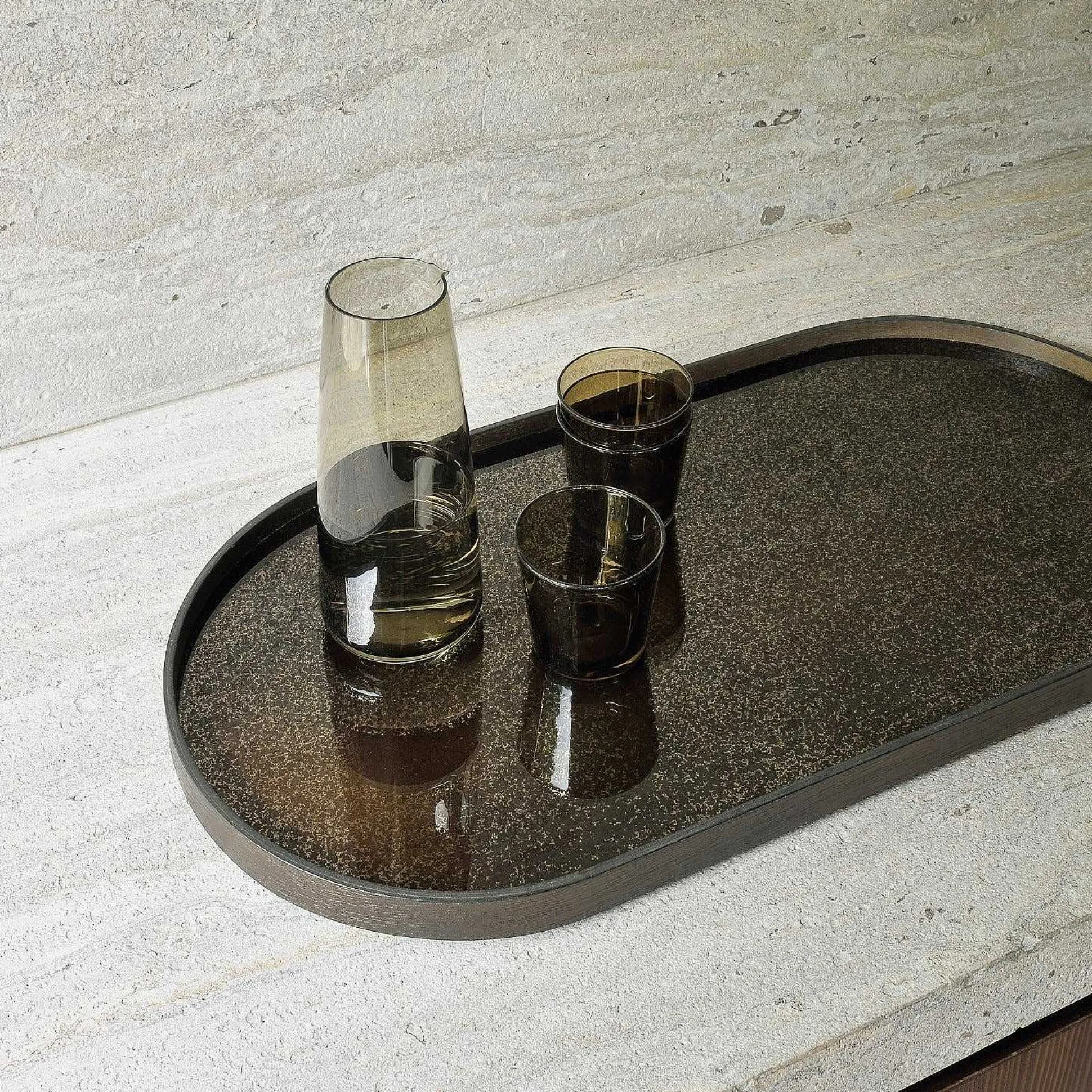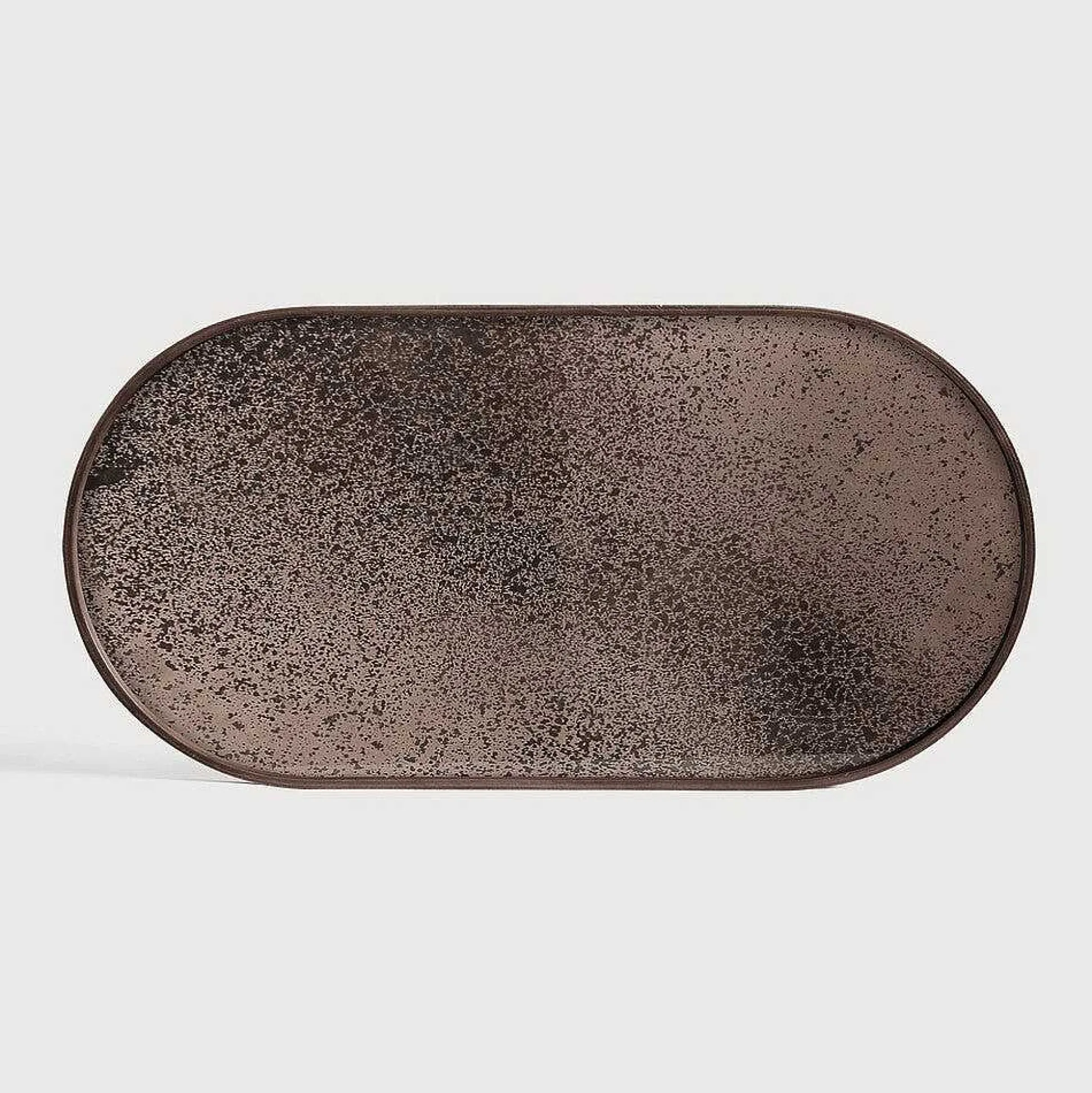 A subdued color palette meets captivating motifs inspired by nature and travel. This oblong Bronze mirror tray experiments with the balance between rich patterns offset with muted tones, revealing the beauty behind the deceivingly ordinary subjects from which inspiration is drawn. In doing so, this collection captures the essence of timelessness.