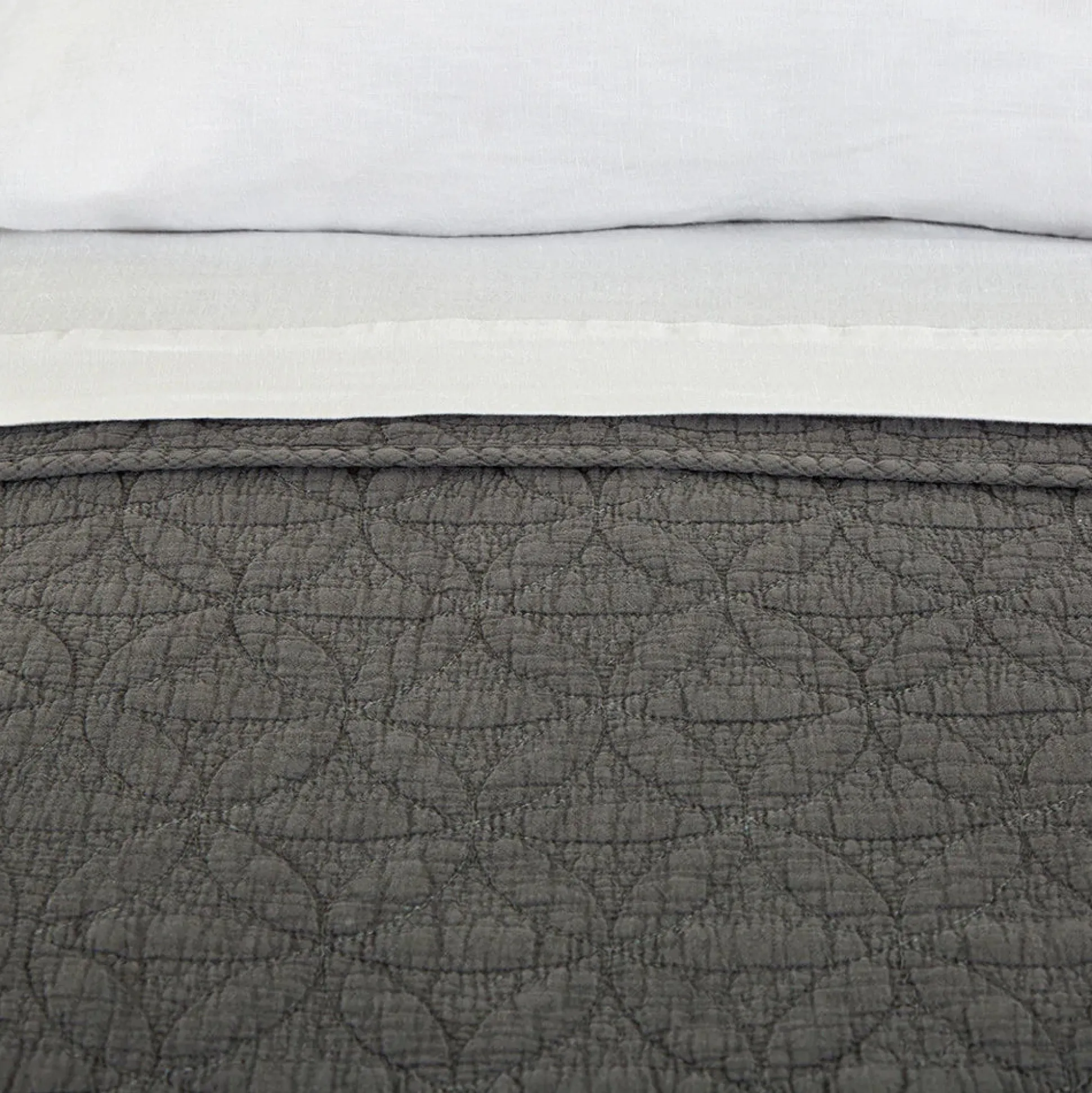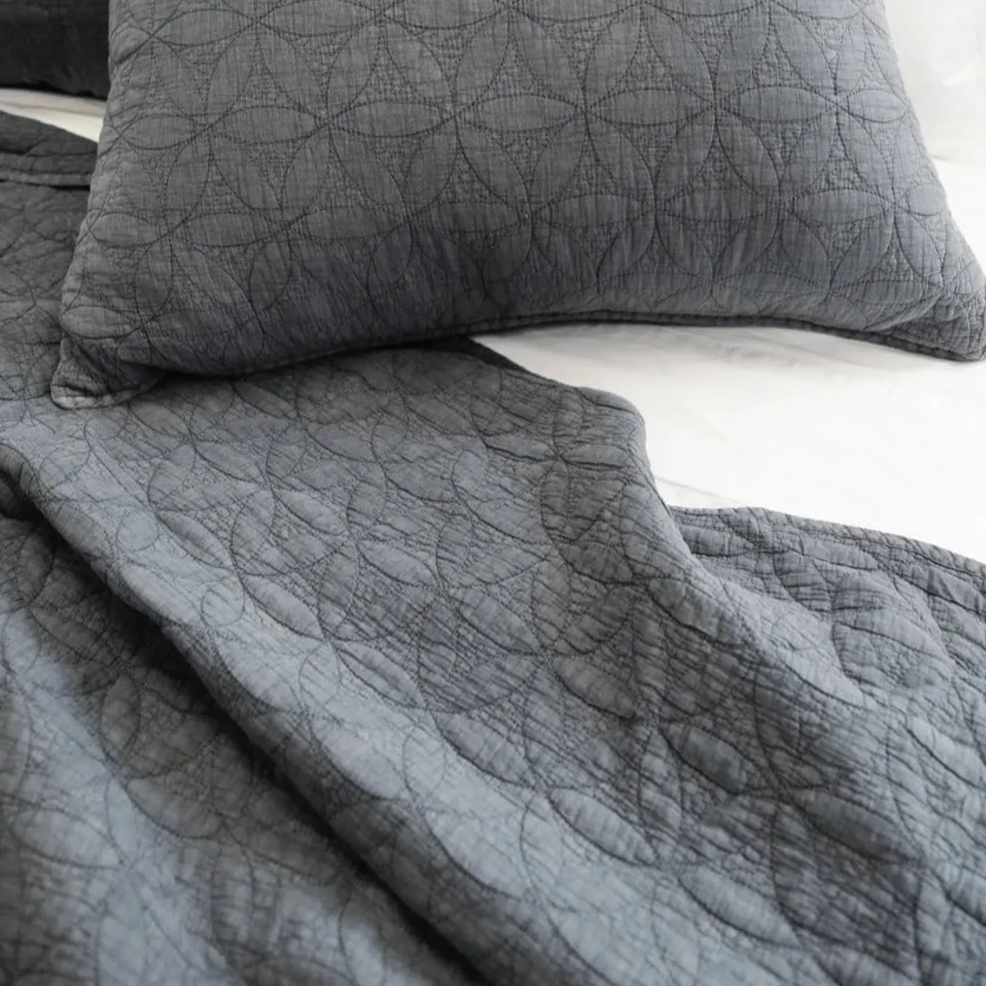 The Oslo is 100% stonewashed cotton coverlet collection. It features a geometric petal pattern that adds texture and dimension to any bed.