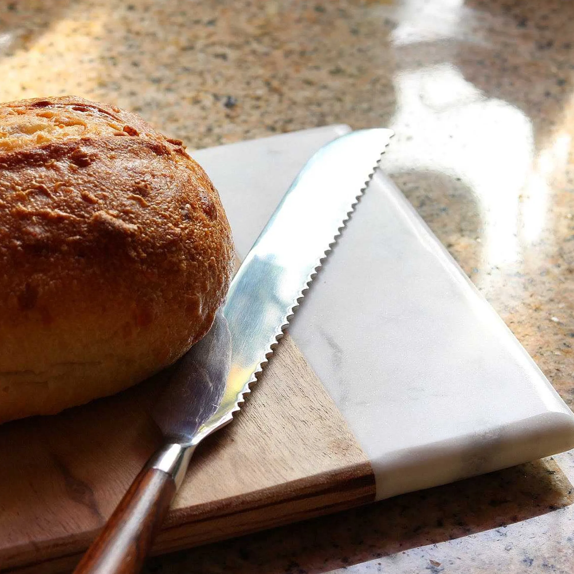 Plate boldly with our elegant Pavia rectangular board. This work of earthly art is both durable and memorable. Our artisans take extra care in hand-selecting only the most dazzling marble cuts available before assembling each board by hand, incorporating a strip of ethically sourced acacia. Pair with one of our handcrafted cheese knives for a complete set.