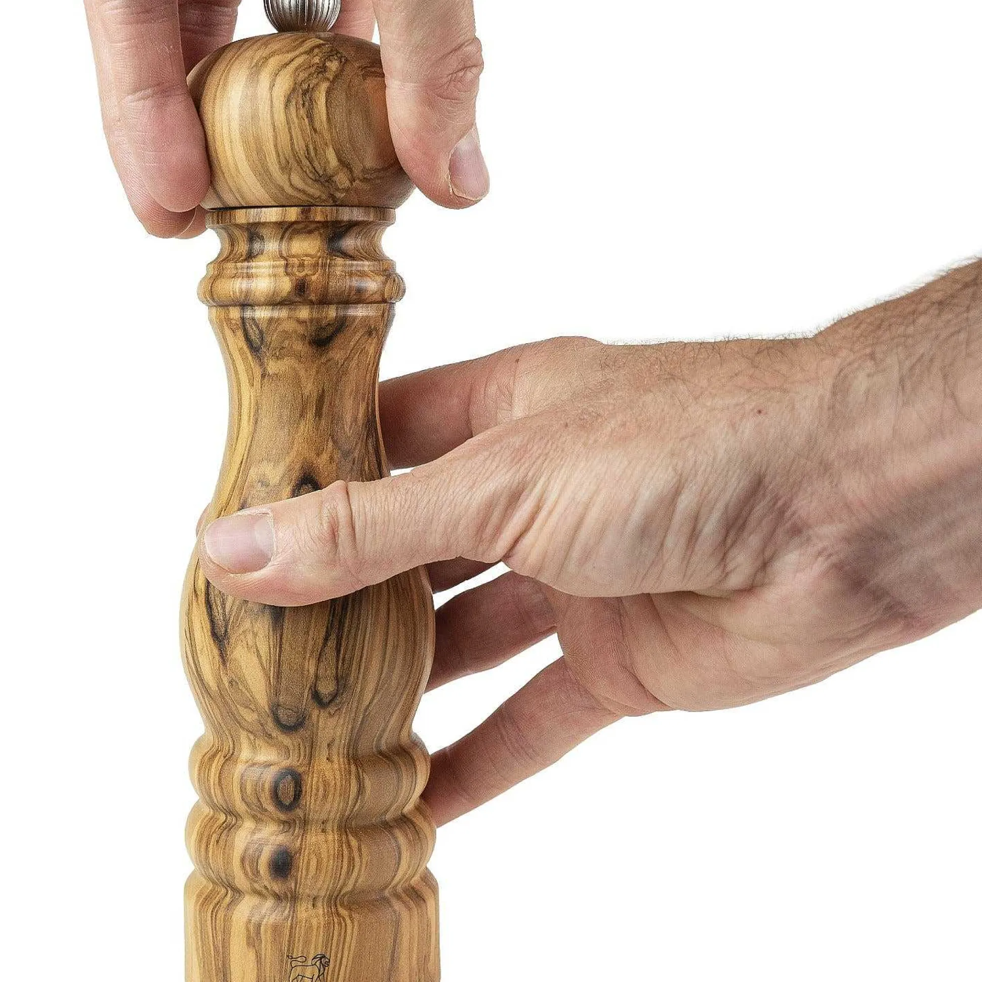 The body of this mill is made from olive wood, whose inimitable and naturally contrasting grain spontaneously gives Peugeot’s 22 cm Paris salt mill all its strength and personality. The body of this mill is made from olive wood, whose inimitable and naturally contrasting grain spontaneously gives Peugeot’s 22 cm Paris salt mill all its strength and personality.