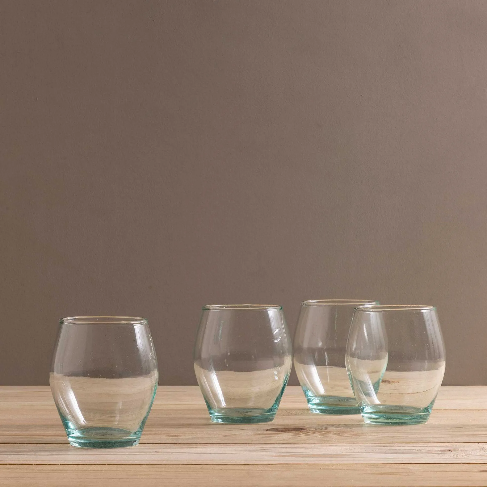 Sip happens… Lift your spirits with our stemless recycled tulip glasses, a universal style of glass for beverages of all sorts from wine to beer, to water or lemonade. Handcrafted from 100% recycled soda bottles, enjoy a one-of-a-kind beverage knowing no two drinks will ever be the same.