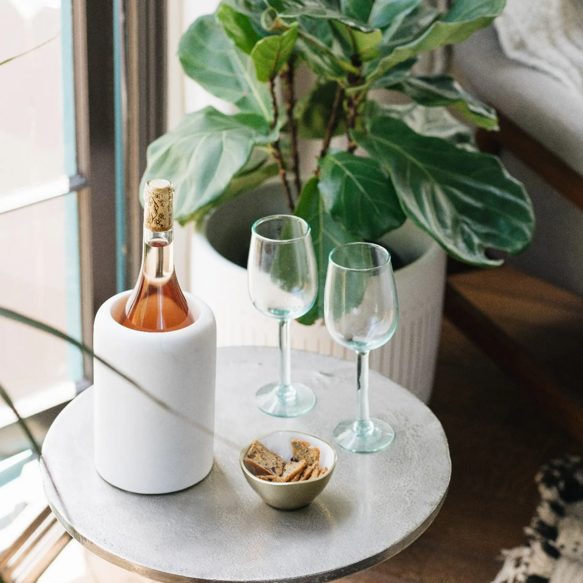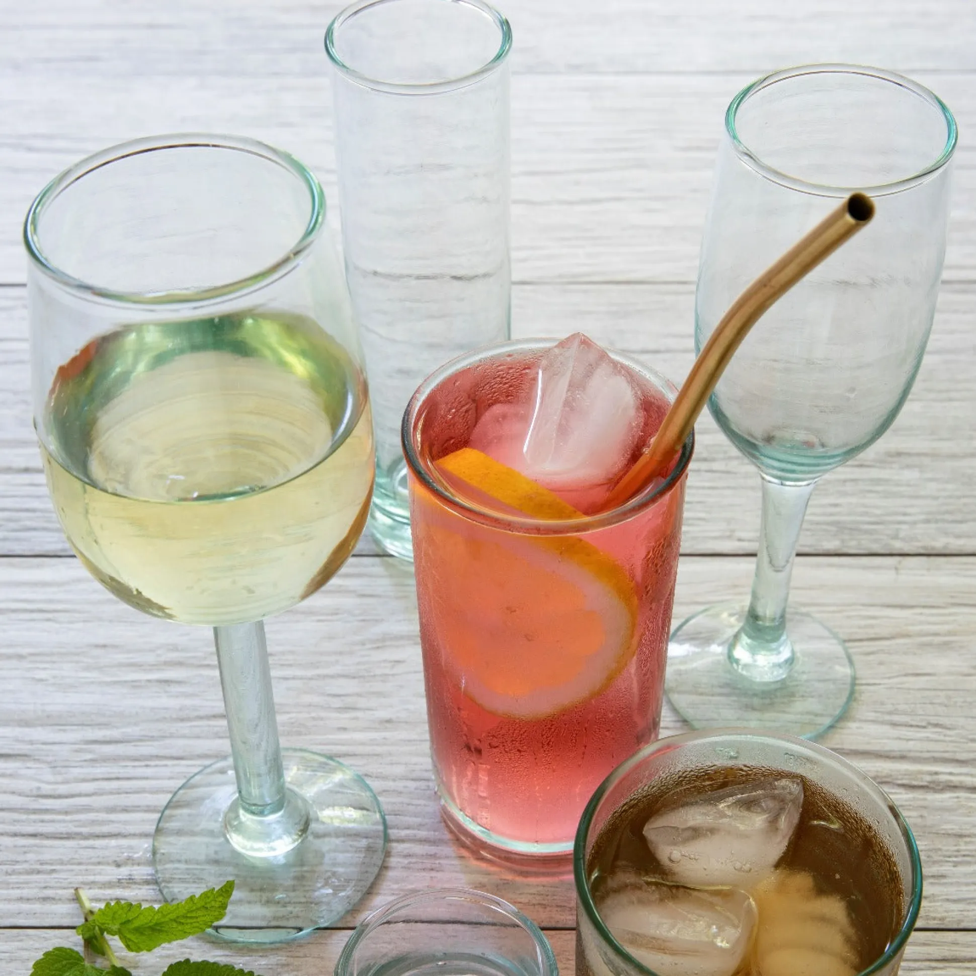 This glassware has us daydreaming of sunny porch days, glass of vino in hand. When it comes to our gorgeous, mouthblown, recycled wine glasses, ten ounces is perfect pour. Whatever the occasion, enjoy your one-of-a-kind beverage knowing no two sips will ever be the same.