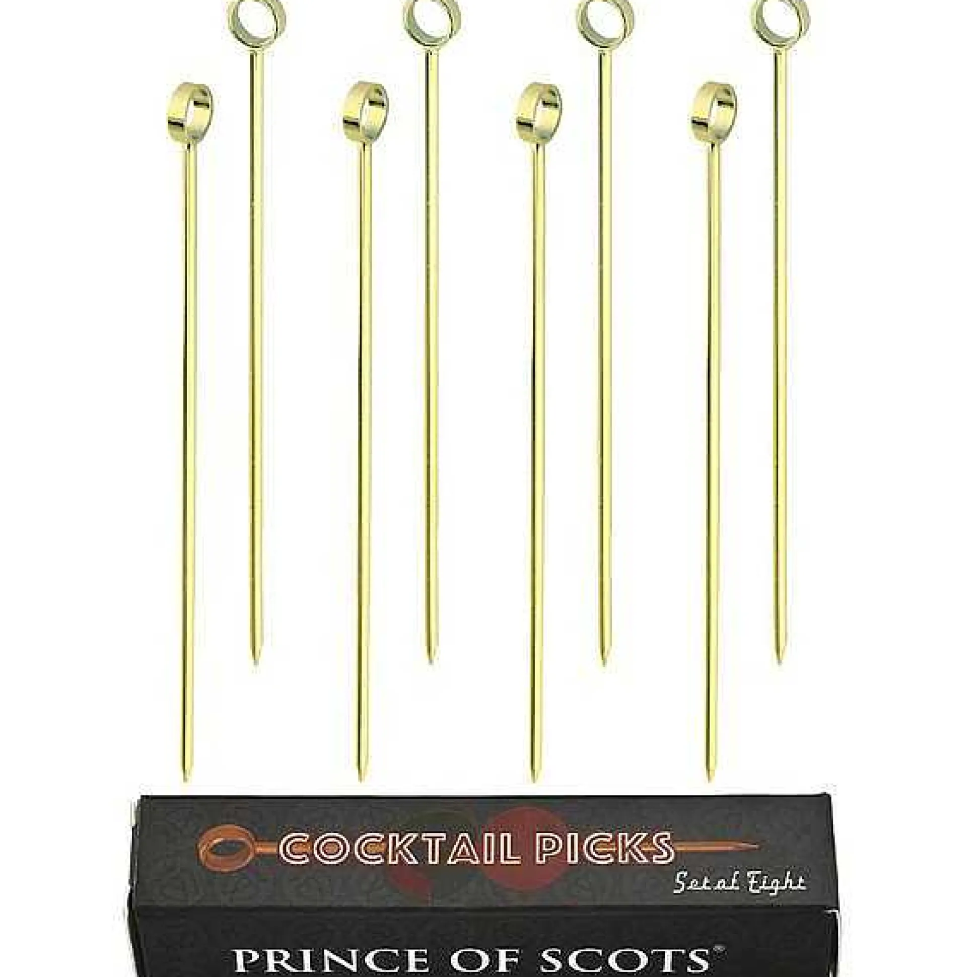 Raise the bar on your cocktail celebrations. Beautifully Boxed 8 Cocktail Pick Set is professional grade stainless steel construction and makes great gift for cocktail enthusiast. Measuring 4 1/3 Inches, the long slim design in gold give Prince of Scots Cocktail Picks an elegant and refined touch to craft cocktail presentation. The Prefect length to compliment any cocktail glass.